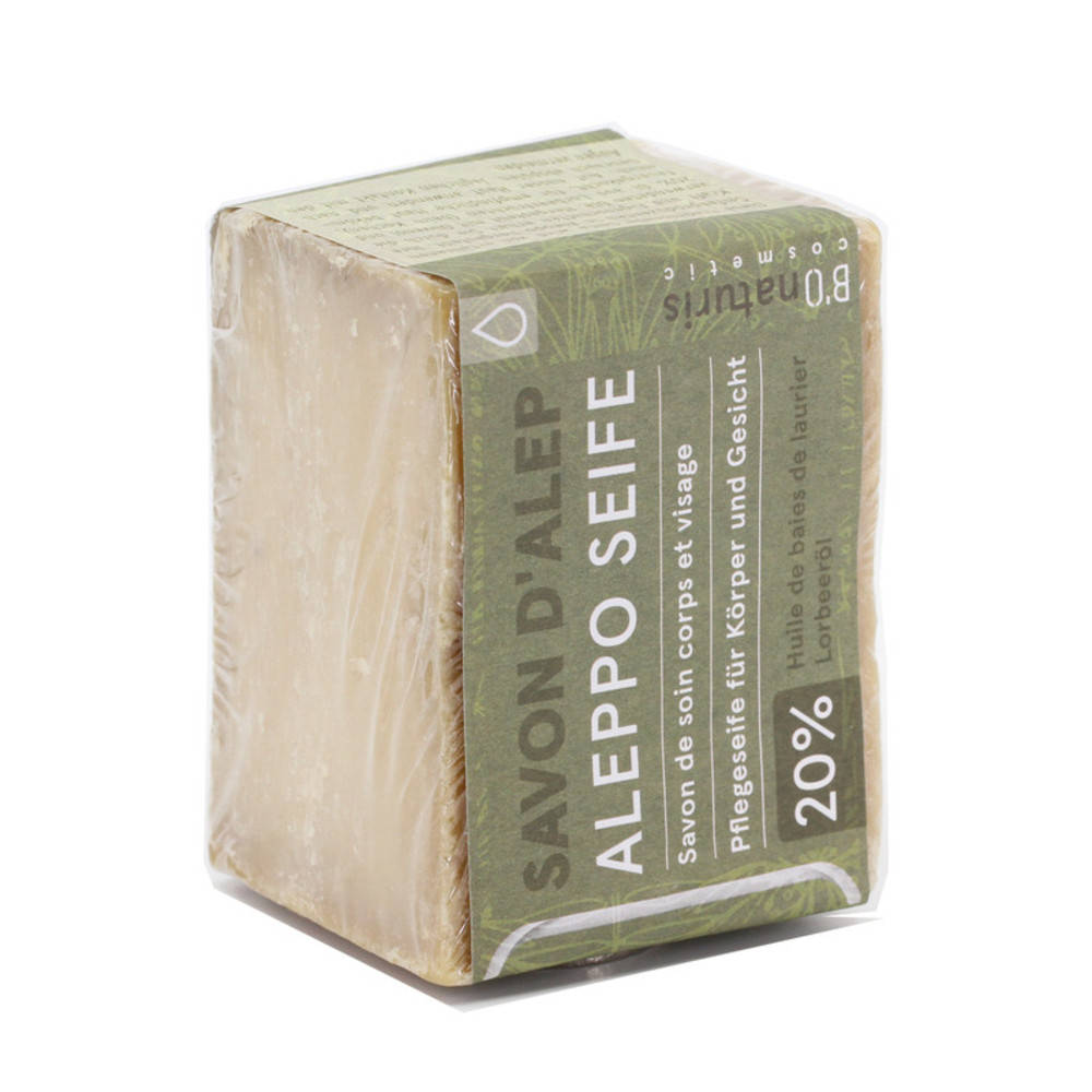 Pflegeseife für Körper und Gesicht - hergestellt über dem Feuer in Aleppo. Nutzen Sie zur Reinigung Ihrer Hände, Ihres Körpers und der Haare eine natürliche Seife mit Olivenöl und dem wertvollen ätherischen Öl der Lorbeerfrüchte. Dieses hat nicht nur eine gründlich reinigenden Charakter, sondern verleiht der Seife auch ihre erfrischenden, stimulierenden und hautstärkenden Eigenschaften. Vor 4000 Jahren wurde in der syrischen Stadt Aleppo, die erste von Menschen produzierte Seife hergestellt. Die Aleppo-Seife! Heute wird die traditionelle Seife von erfahrenen Seifenproduzenten in Aleppo hergestellt. Deren Herstellung ist 100% natürlich und die Grundsubstanzen sind gänzlich abbaubar . Die Seife enthält keine tierischen Fette und wurde nicht an Tieren getestet . Das verwendete Olivenöl aus zweiter Kaltpressung reinigt und nährt die Haut ohne sie zu reizen. Dank der Milde der Seife ist sie ideal auch für den Intimbereich . Sie bekommt allen empfindlichen Hauttypen und ist dermatologisch getestet.