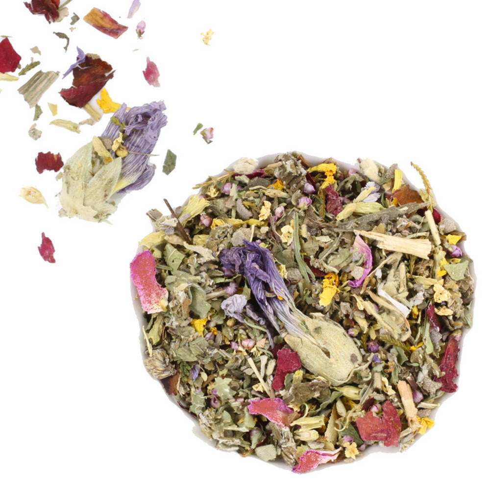 Salbei Bio, Eibischblätter, Eibischblüten, Klatschrosenblüten, Spitzwegerichblätter Bio, Schlüsselblume Bio, Holunderblüten Bio, Thymian Bio, Minzblätter Bio, Erikablüten Bio, Himbeerblätter Bio, Edelweiss Bio. Kontrollstelle: CH-BIO-006