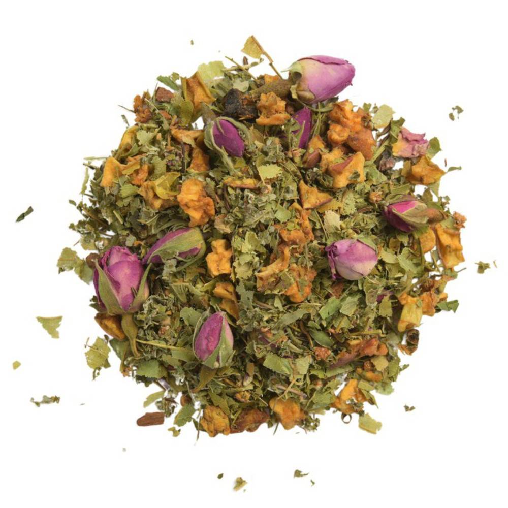 Apfel Bio, Verveine Bio, Himbeerblätter Bio, Zimt (Cassia), Kümmel Bio, Rosenknospen Bio, Lindenblüten Bio Kontrollstelle: CH-BIO-006