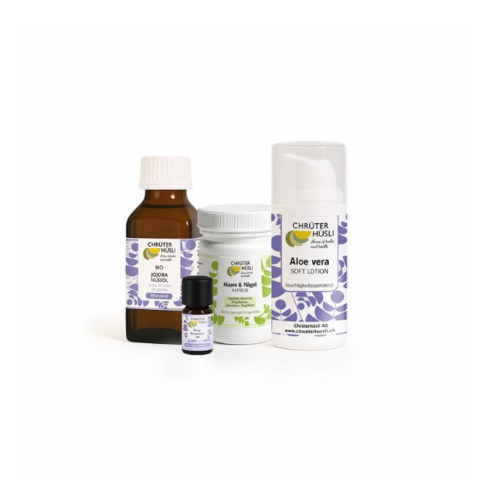 Perfekt für eine kleine Beauty-Routine zuhause: Die Aloe Vera Lotion pflegt intensiv nach dem Duschen, während das Jojoba Öl besonders gut für Gesicht, Körper oder als Haarspitzenpflege geeignet ist. Die Haar & Nägel Kapseln lassen sich täglich einnehmen. Das Rosmarin Öl bringt Frische in die Kopfhaut oder ins Duftlämpchen. Wenn Du mehr wissen möchtest, findest Du bei jedem Produkt weitere Informationen zur Anwendung und Wirkung.