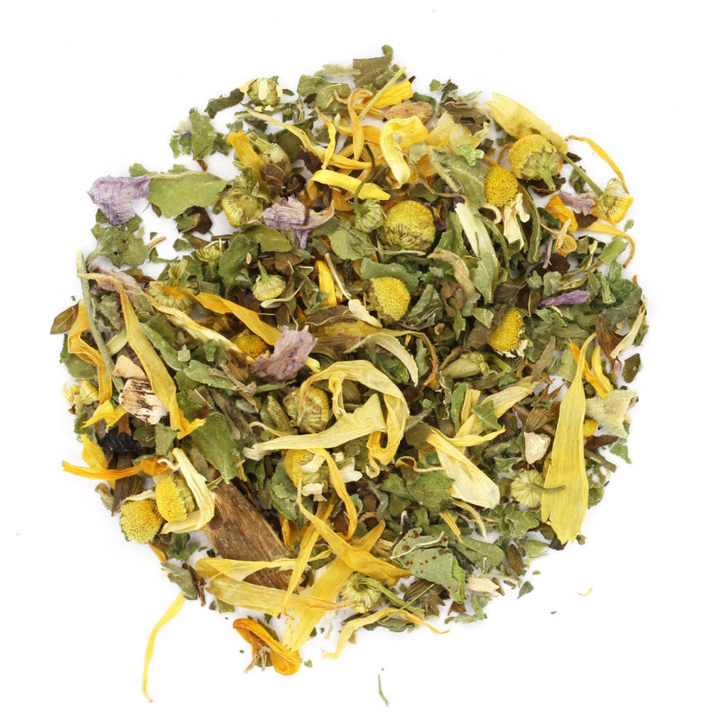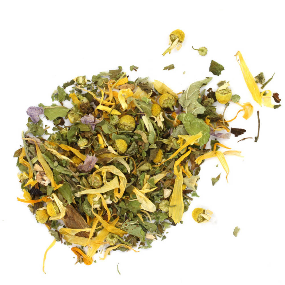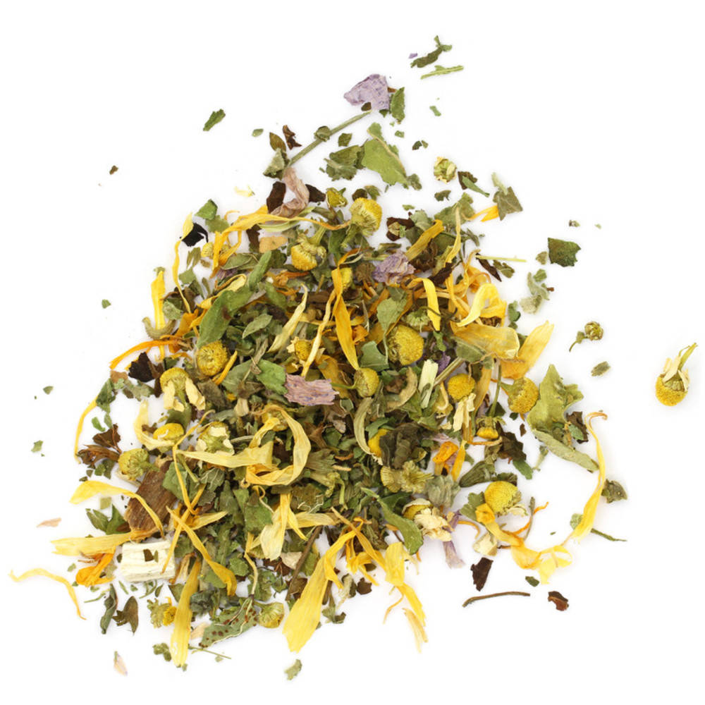 Eibischblätter Bio, Eibischwurzel Bio, Melissenblätter Bio, Malvenblätter Bio, Kamillenblüten Bio, Süssholzwurzel Bio, Ringelblume Bio, Eibischblüten, Kalmuswurzel Kontrollstelle: CH-BIO-006