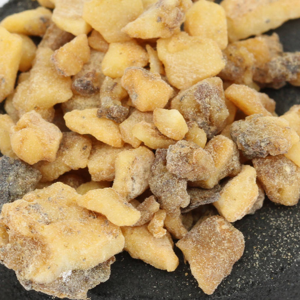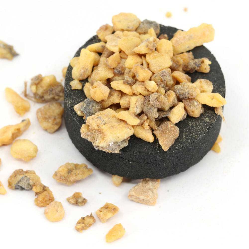 Allgemein: Dieser bis zu 20m hoch wachsende Styraxbaum, mit einer schokoladenfarbenen, dünnen Rinde, wächst in Laos, Vietnam, Thailand, Malaysia und Kambodscha. Er wird durch Anritzen der Rinde bis auf das Holz verletzt und die austretende Wundabsonderung wird, wenn sie eine rötlich- braune Farbe annimmt, als Benzoeharz geerntet. Es ist leicht zerbrechlich und an den Bruchstellen erst weisslich, bevor es durch die Luft nachdunkelt. Botschaft: Auf sanfte Weise werden die Gefühle geheilt damit die geistige Kraft sich schützend und hilfreich entfalten kann, „ Balsam für die wunde Seele“!