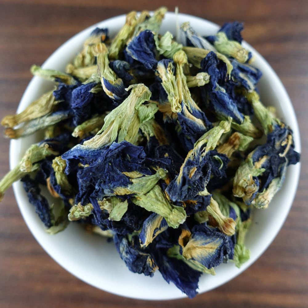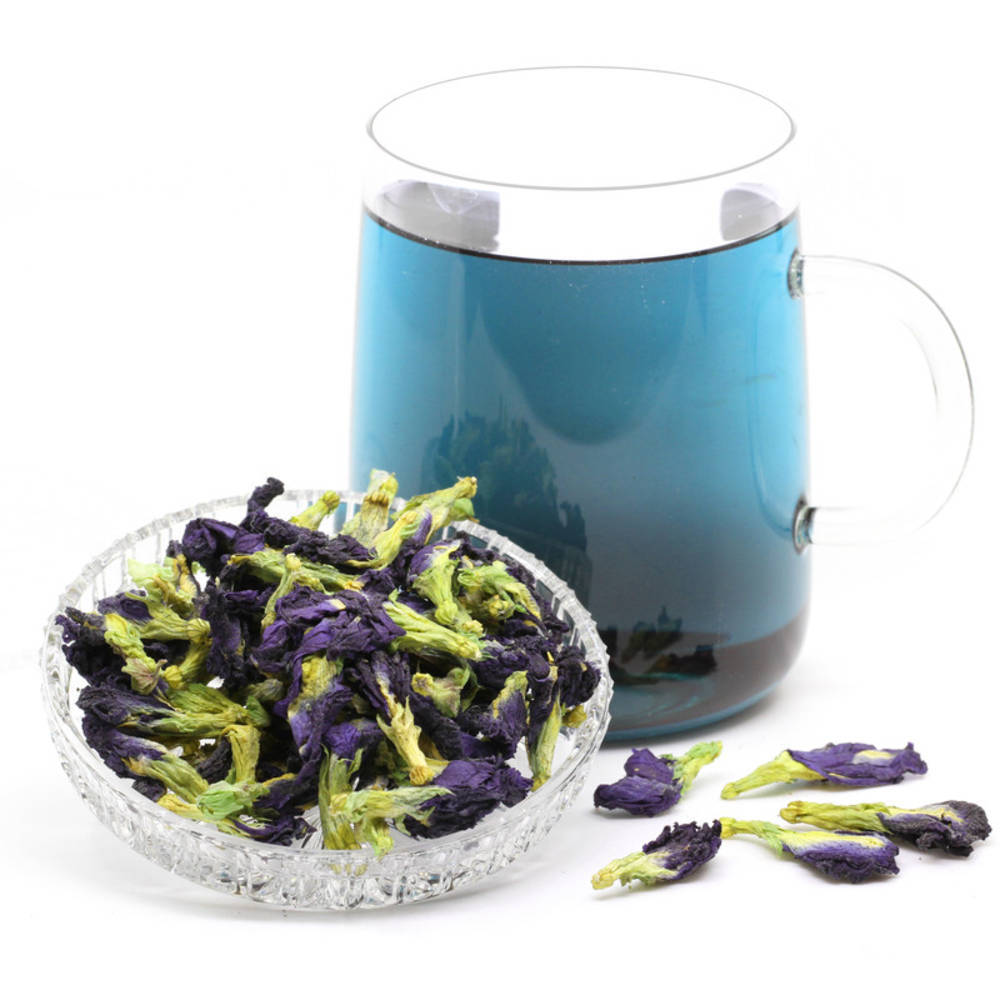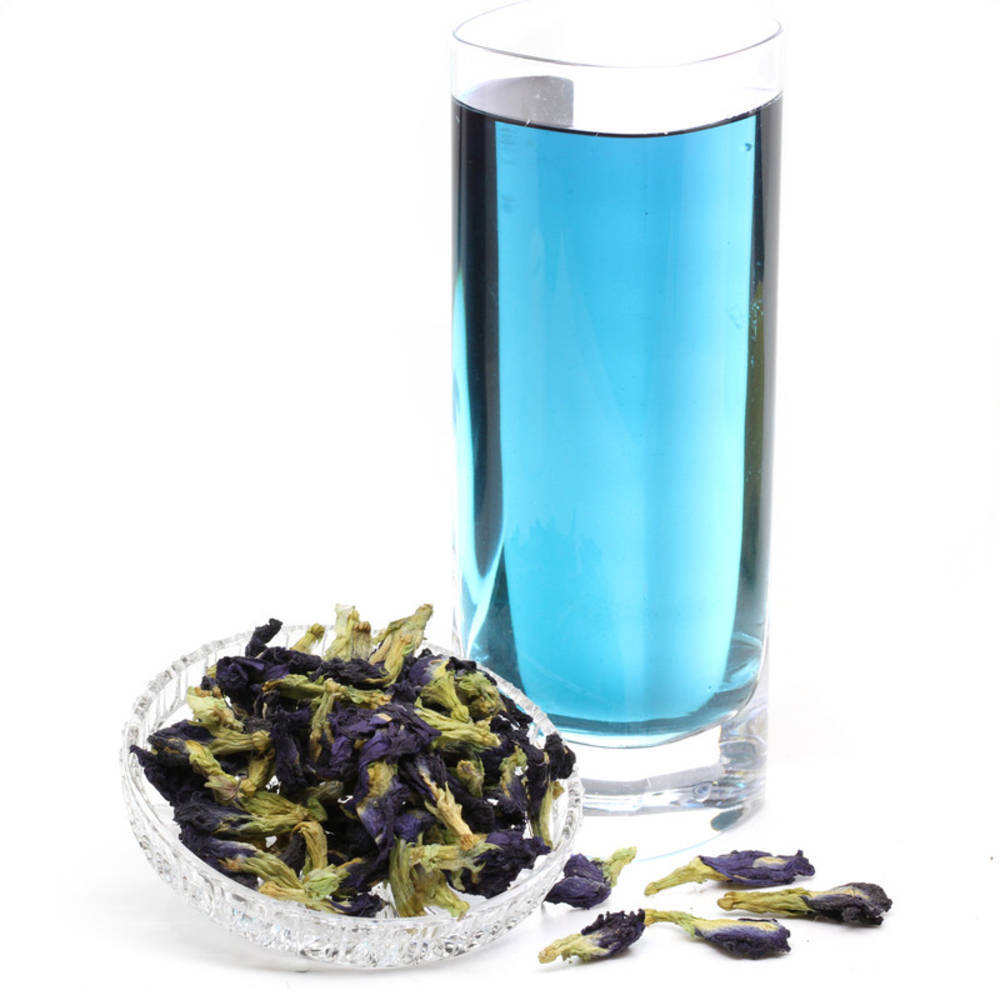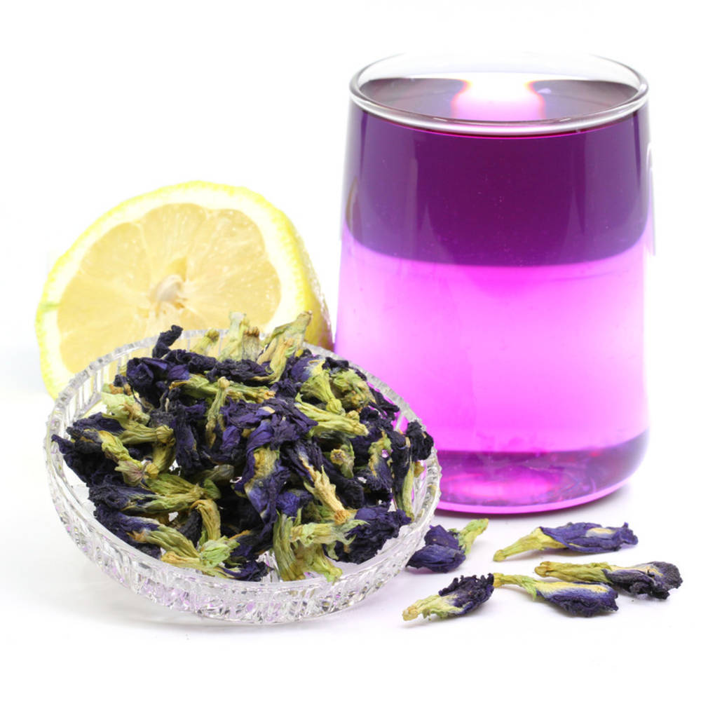Nahrungsergänzungsmittel. Unser schöner Blue Chai aus getrockneten Schmetterlingserbsenblüten (Butterfly Pea Flowers) kommt aus Thailand. Dort wird er zusammen mit Zitronengras als Eistee getrunken. Die Blüten können mit heissem oder mit kaltem Wasser angegossen werden. Das Wasser bekommt dann eine tiefblaue Farbe. Gibt man dann noch ein wenig Zitronensaft hinzu, wechselt die Farbe zu Magenta! Ein echter Hingucker mit Zauberpotential! Bluechai hat einen sanften, subtilen blumigen Geschmack, der sich gut mit Honig und Zitrone ergänzen lässt oder mit Nanaminze für einen kühlen Geschmack. Synonyme: Blauer Chai, Blaue Klitorie, Schamblume, Bluechai