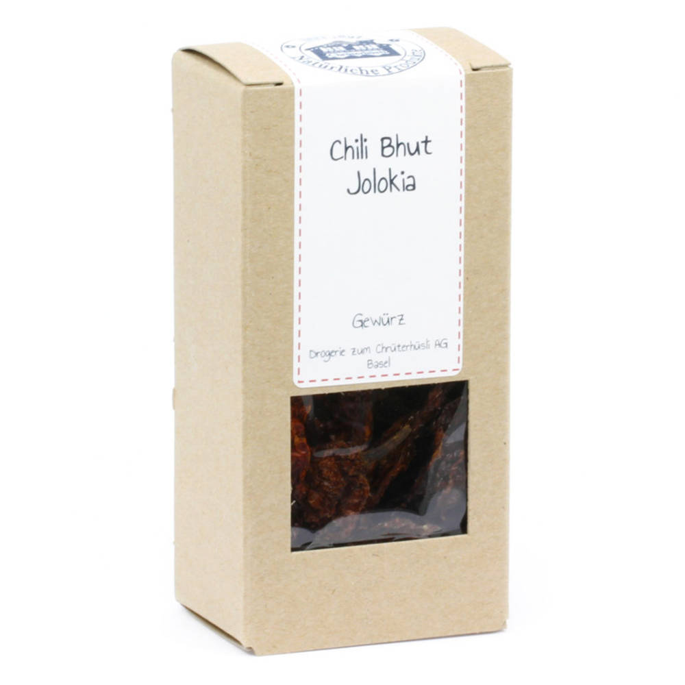 Mitgegart werden die Schoten wieder weich und können von geübten Chili-Essern verspeist werden. In der Küche des nordöstlichen Indiens, besonders in Nagaland, wird die ‘Bhut Jolokia’ nicht nur wegen ihrer Schärfe (eine der schärfsten Chili der Welt), sondern auch aufgrund ihres fruchtigen Aromas  geschätzt. Sie wird grün oder ausgereift geerntet und roh verwendet oder zusammen mit Gemüse gekocht. Bhut Jolokia Früchte werden durch Einlegen, Trocknen oder Räuchern haltbar gemacht. Unser Bhut Jolokia ist neutral im Ofen getrocknet worden. Zubereitung: 10-15 Minuten in heissem Wasser einlegen oder dieselbe Zeit in Flüssigkeit kochen.