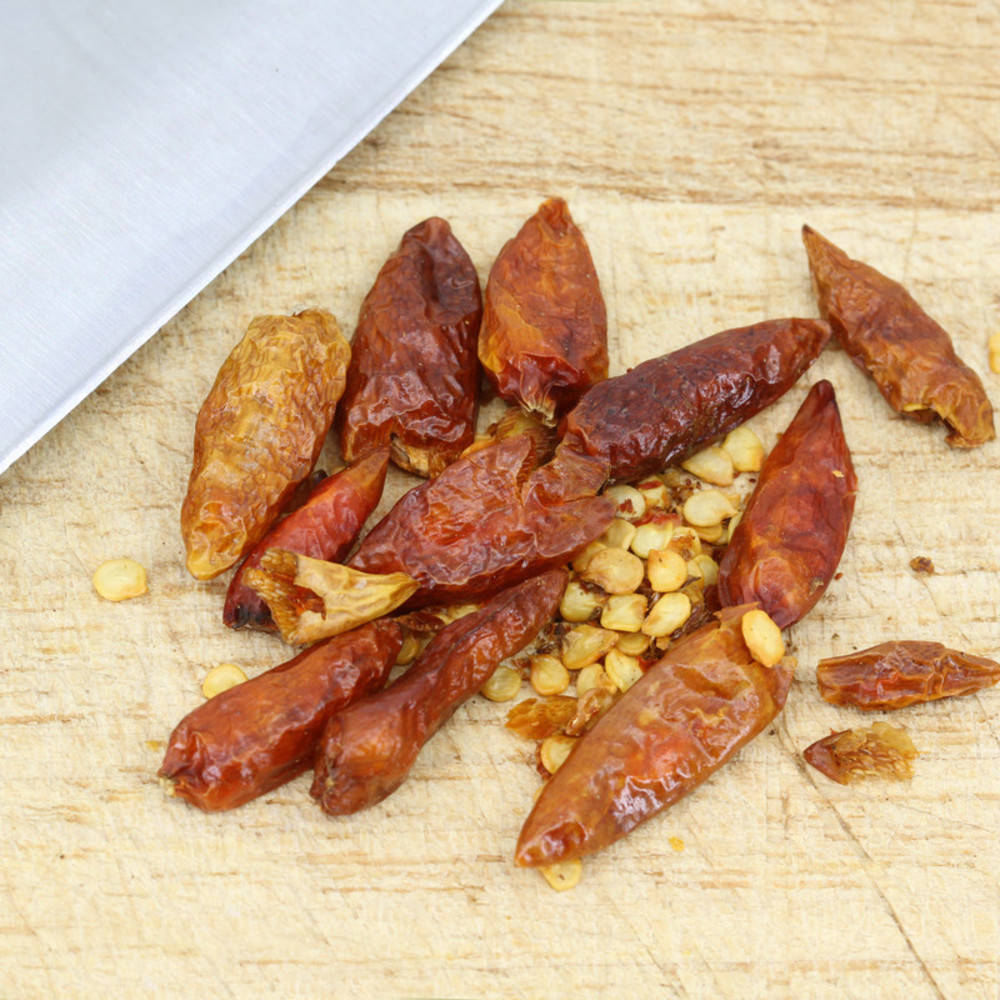Bird Eye - die Vogelaugen - mögen die Hitze und gedeihen darum im heissen Südostasien ebenso gut, wie in Zentralafrika, Indien und Südamerika. Sie weisen einen sehr hohen Capsaicin Gehalt, auf, die unsere Geschmacksknospen mit einer ausgeprägten Schärfe konfrontieren. Die kleinen, feurigen Schoten (ca. 2-4cm lang) sind in der thailändischen Küche weit verbreitet und werden oft als „Thai-Chilis“ bezeichnet. Sie verleihen den Thai-Currys, je nach Reifegrad (gelb, grün, rot) die charakteristische Farbe. Ebenso verwandt, aber nicht identisch sind sie mit der Piri-Piri-Chili , die auch African Bird’s Eye genannt wird. Thai Chilis Eine echte Thai-Chili-Sorte existiert so eigentlich gar nicht. Da Thai-Chilis augrund der Grösse der Bevölkerung im asiatischen Raum in extrem grossen Mengen produziert werden müssen, haben sich je nach Anbauregion unterschiedliche Chilitypen durchsetzen können. Allen gemeinsam ist der nicht besonders auffällige Eigengeschmack - hingegen haben alle einen kurzen und intensiven Schärfekick, der schnell wieder nachlässt. Klassische Thai-Wok-Gerichte werden mit grob gehackten Thai-Chilis, Knoblauch, Lemongras und Koriander im Öl zu einer Paste verarbeitet und anschliessend mit Fleisch oder Gemüse direkt gebraten. Passt zu: Kokossuppen mit Crevetten, Sushi Reis, Pack Choi, gedämpfter Reis, Nudeln, Rinderbouillon Harmoniert mit: Korianderblätter, Kreuzkümmel, Knoblauch, Ingwer, Zitronenschale, Lemongras Kontrollstelle:CH-BIO-006