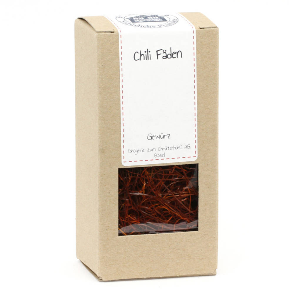 Chili Fäden sind dünn geschnittene Chilischoten. Sie eignen sich gut als dekoratives Gewürz.