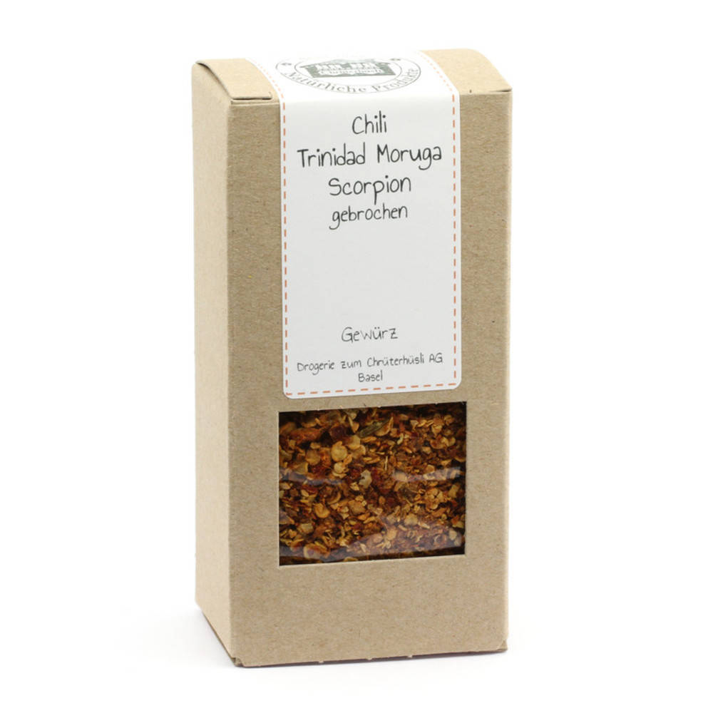 Im Februar 2012 wurde dieser Chili als der "schärfste Chili der Welt" ausgezeichnet. Inzwischen wurde er zwar vom Carolina Reaper übertroffen, doch  weist er immerhin einen Schärfegrad von über 2 Millionen Scoville Einheiten auf. Er ist benannt nach seinem Ursprungsort, dem Bezirk Moruga, welcher an der Südküste von Trinidad und Tobago liegt. Seine natürliche Grösse entspricht etwa einem Golfball und die für Chilis typische, zugespitzte Form fehlt diesem Scorpion-Chili.  Er weisst eine ausgeprägt furchige Haut auf.