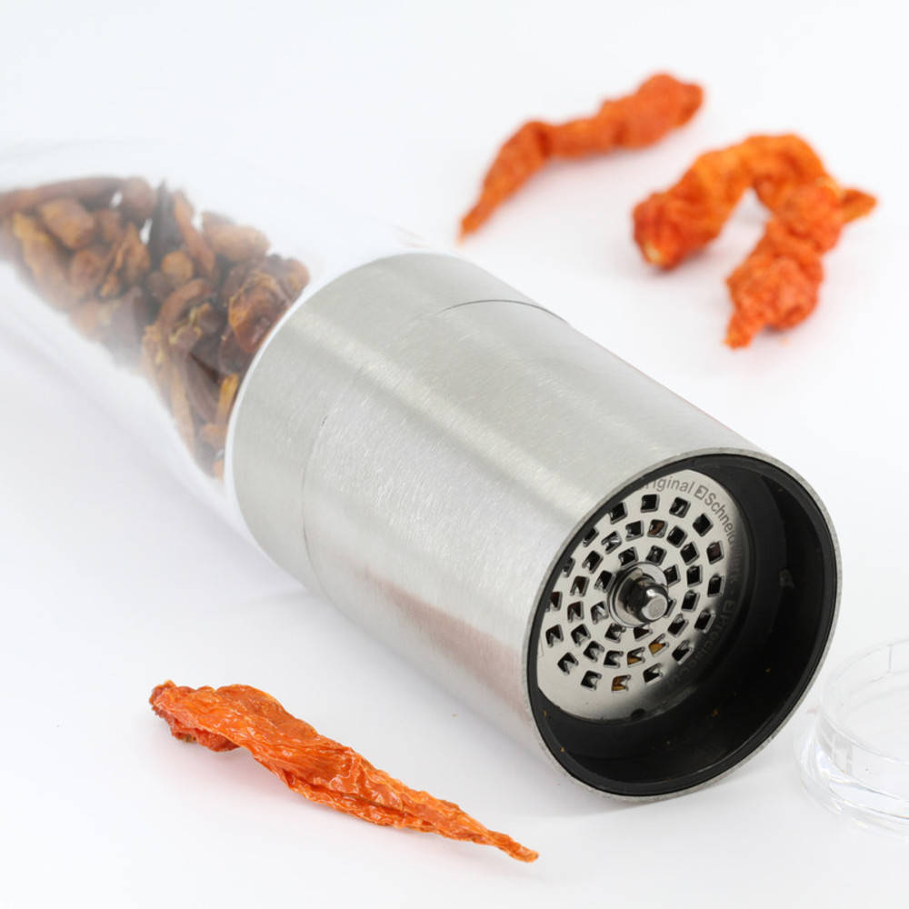 1 Chili Schneider, 4-teilig (Mahlgutbehälter, Gewindering, SchneidWerk®-Gehäuse, Aromaschutzkappe)
