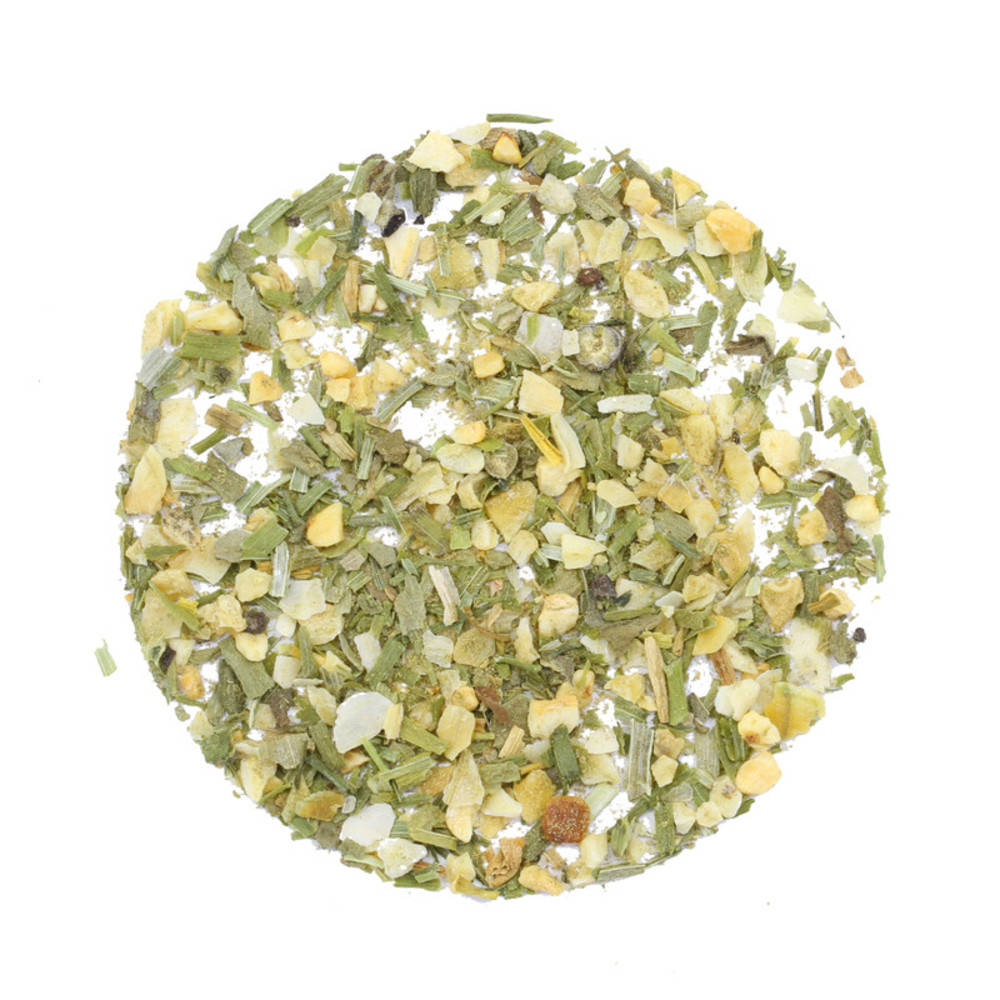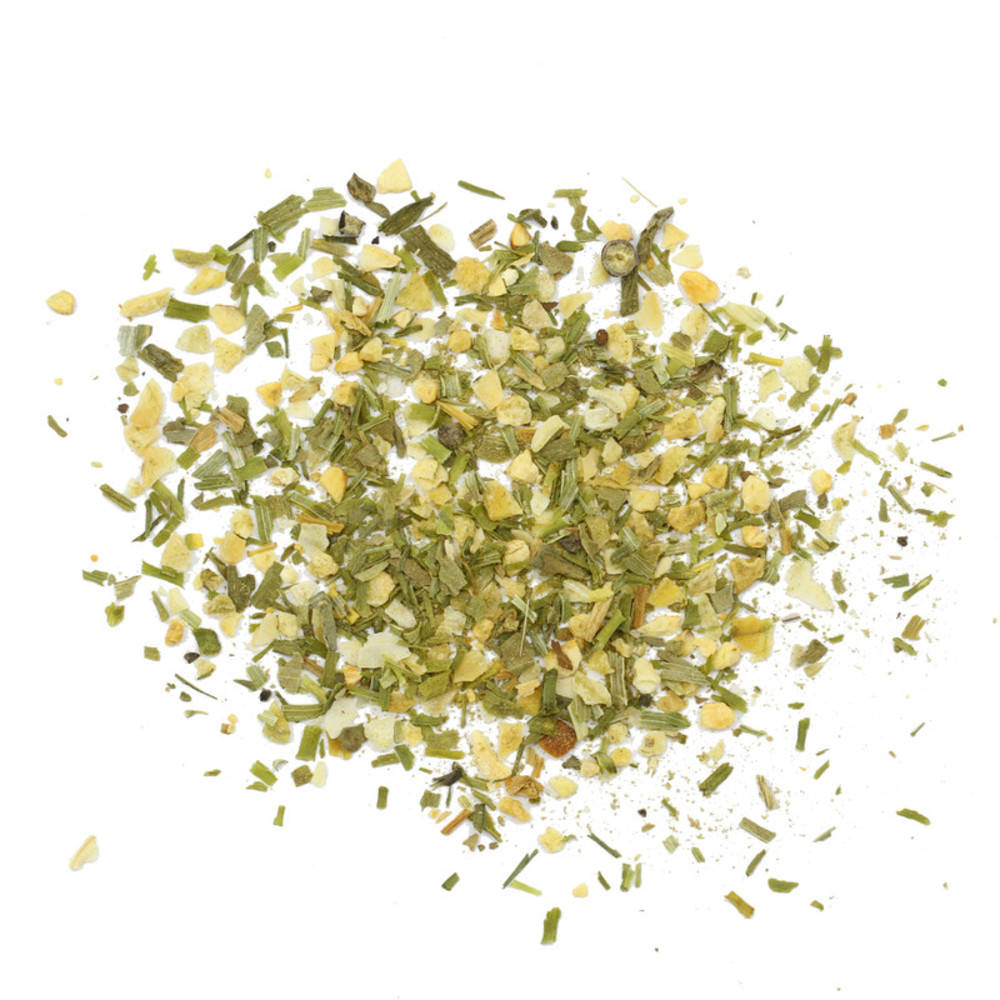 Zwiebel Bio, Knoblauch geräuchert, Schnittlauch Bio, Meersalz, Knoblauch Bio, Majoran, Oregano, Basilikum Bio, Pfeffer schwarz Bio. Kontrollstelle: CH-BIO-006