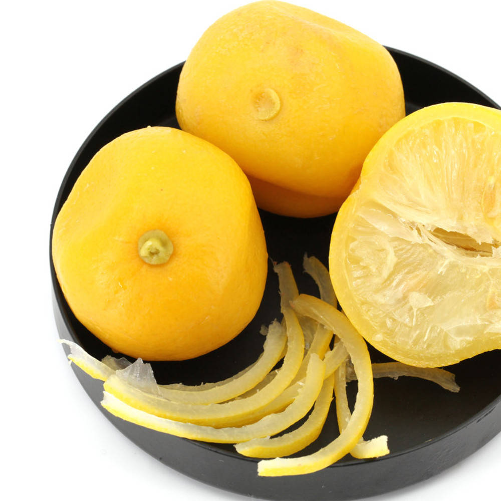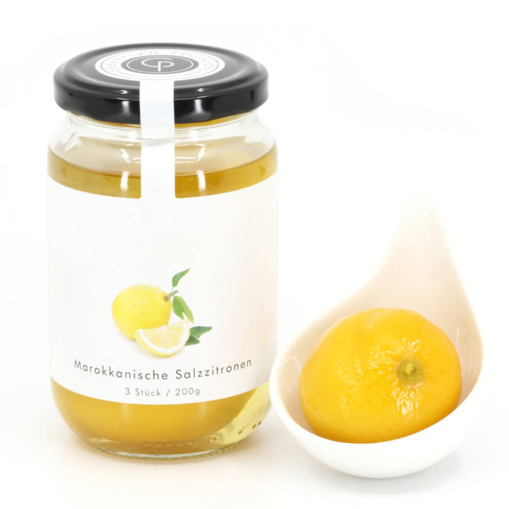 Eingelegte Zitronen sind eine bekannte marokkanische Spezialität, bei der die Zitronen im Einmachglas mit Salz und Zitronensaft, teilweise mit weiteren Gewürzen wie Chili, Pfeffer, Lorbeer, Kardamom oder Zimt gewürzt und während 6-8 Wochen eingemacht werden. Dabei entfalten die Salzzitronen einen unvergleichbaren Geschmack, eine Mischung aus sauer, fruchtig, pikant und salzig. Dieser Geschmack verleiht auch einfachen Gerichten aus Gemüse (z.B. Randen und Bohnen), Hülsenfrüchten, Fleisch, Lamm, oder gebackenem Fisch ein besonderes, frisches Aroma. Reisgerichte, Pesto, Hummus, Salate, Dressing, Eierspeisen, Suppen und gebackenes Gemüse profitieren von der fruchtigen, frischen Note der eingelegten Zitronen. Und warum nicht mal die fein geschnittene Zitronenschale in etwas geschmolzener Butter wenden und auf ein Baguette streichen, anstelle von Knoblibrot? Mit den eingelegten Zitronen wird häufig das marokkanische Nationalgerichte Tajines mit Couscous gewürzt, meistens wenn es mit Huhn oder Fisch zubereitete wird. In Marokko würzt man ebenso Salate mit der klein geschnittenen, gesalzenen Schale. Sogar zu Süssspeisen mit Vanille passt die Schale der eingelegten Zitrone. Ein wahrer Genuss mit kräftigem Zitronenaroma. Übrigens: Eingelegte Zitronen finden eine vielfache Anwendung in den Rezepten von Yotam Ottolenghi!