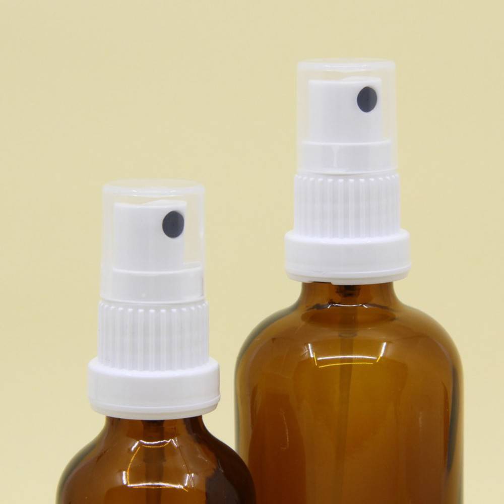 Weisse Allround Fine Spray Zerstäuberpumpe mit Originalitäts-Verschraubung, inkl. transparenter Schutzkappe. Pro Sprühstoss werden 0.14ml Flüssigkeit abgegeben. Dieser Sprayaufsatz wird komplett mit der passenden Allround-Braunglas-Flasche geliefert.
