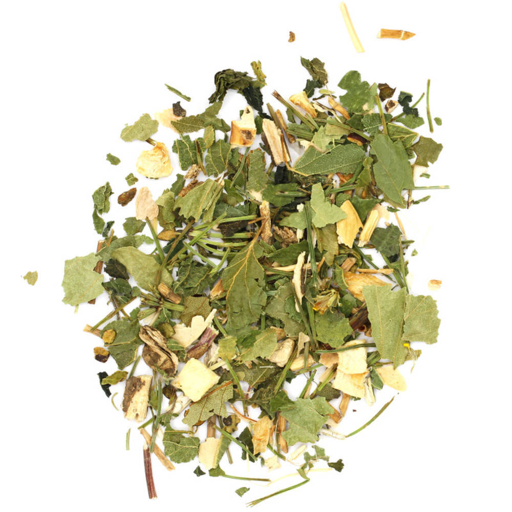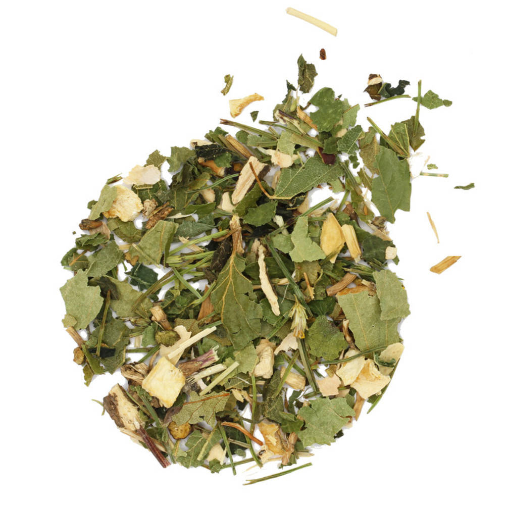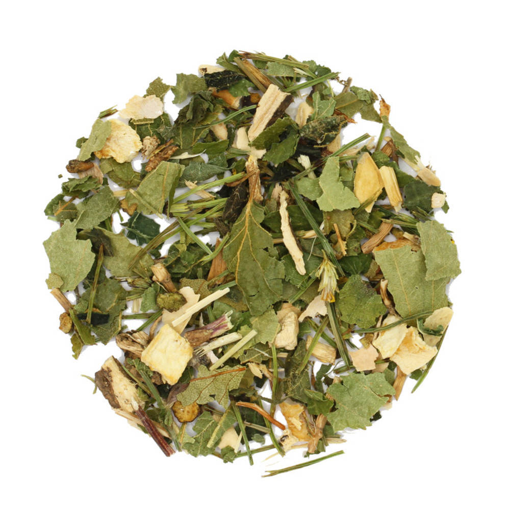 Brennesselblatt Bio* Hauhechelwurzel Bio* Petersilienwurzel Bio* Birkenblätter Bio* Bohnenschalen Bio* Queckenwurzel Goldrutenkraut Bio* Wacholderbeere Bio* Schachtelhalm Bio* *Zertifizierungsstelle: CH-BIO-006