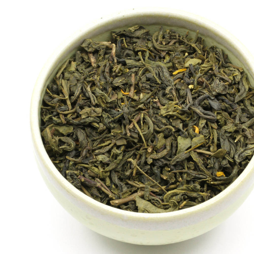 Grüntee China Jade Wings*, Mangostücke*, Ringelblumenblüten*, natürliches Aroma: Mango, *Zutaten aus biologischem Anbau: CH-BIO-006