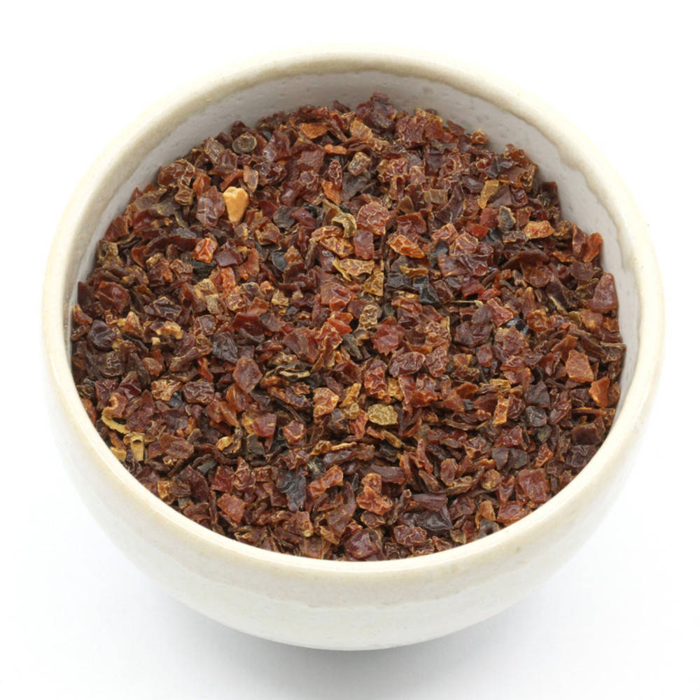 Geschnittene Hagebuttenschale mit Samen in Bio Qualität zur Tee Zubereitung. Kontrollstelle: CH-BIO-006