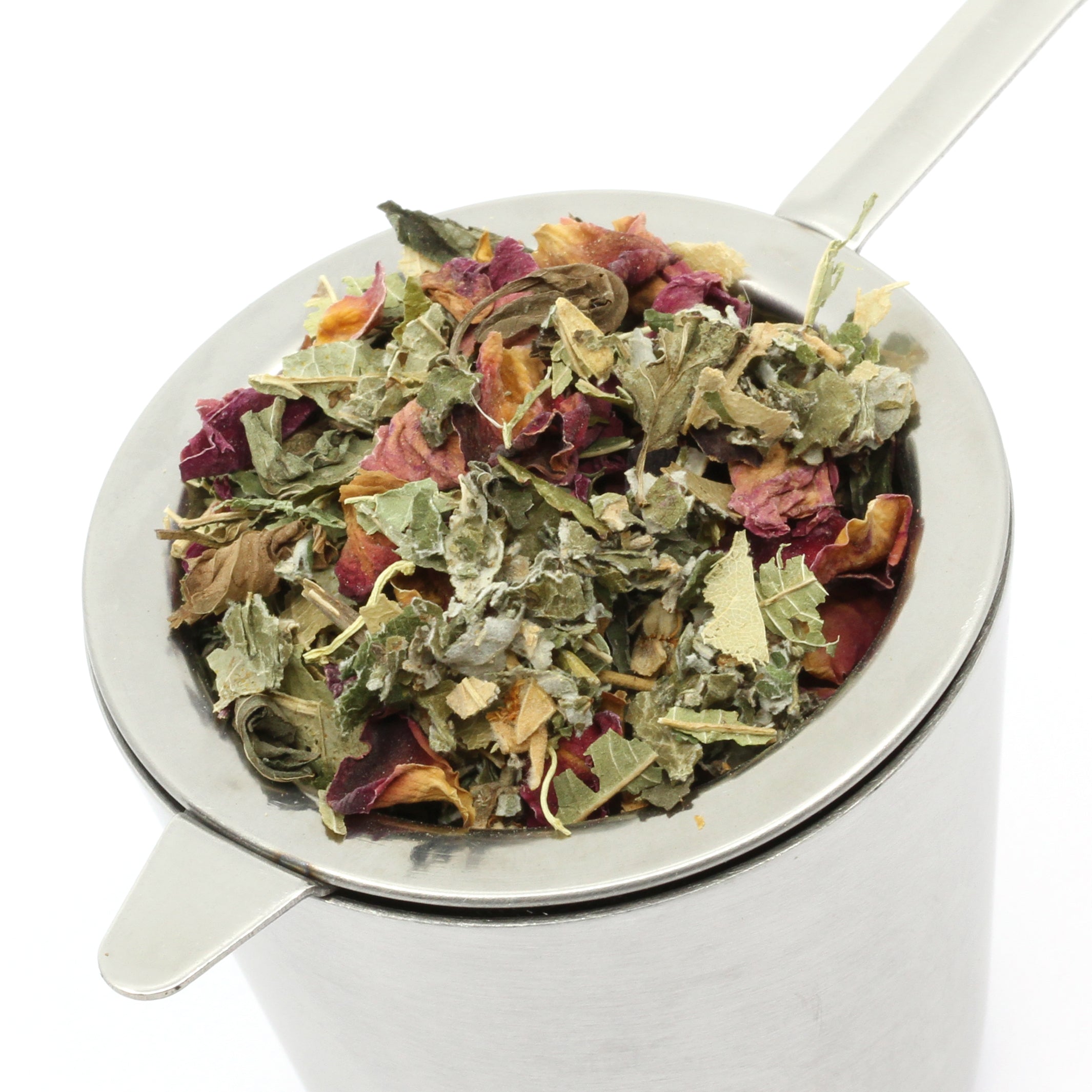 Pfefferminze*, Eisenkraut*, Himbeerblätter*, Johannisbeerblätter*, Holunderblüten*, Rosenblüten*, Lindenblüten* * aus kontrolliert biologischer Landwirtschaft