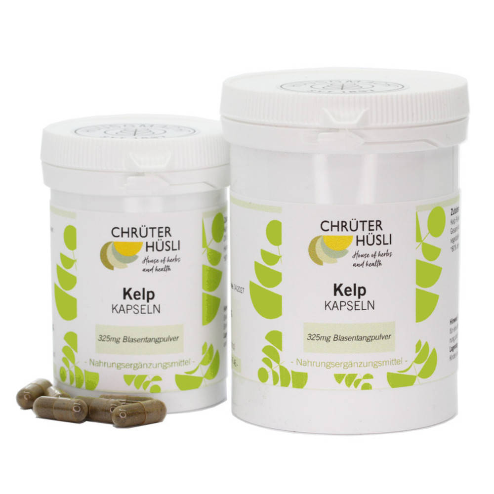 Hausgemachtes Nahrungsergänzungsmittel mit Blasentangpulver zur Unterstützung der natürlichen Funktion des Stoffwechsels. Kelp ist der Oberbegriff für verschiedene Braunalgen-Arten. Die bekannteste Art ist der Blasentang (Fucus vesiculosus), eine Alge, welche im Nordatlantik vorkommt. Kelp ist von Natur aus reich an Jod und hat einen stimulierenden Effekt auf die Schilddrüse. Diese reguliert im Körper die natürliche Aktivität unseres Stoffwechsels.