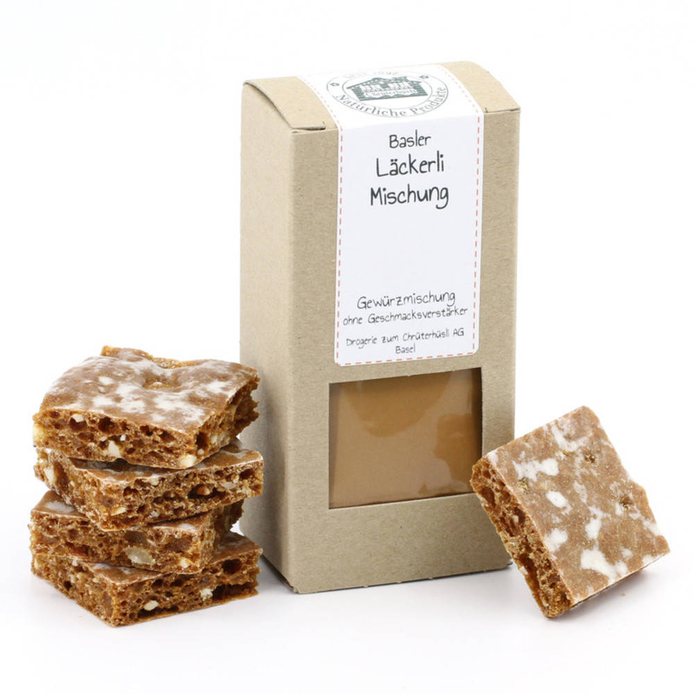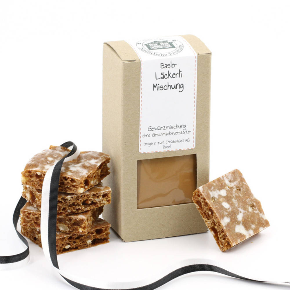 Läckerli ist ein traditionelles lebkuchenartiges Gebäck der Stadt Basel aus dem 17. Jahrhundert. Das Gebäck wird mit Weizenmehl, Honig, kandierten Früchten ( Orangeat , Zitronat ) und Nüssen hergestellt. Nach dem flach Ausrollen des Teiges und des Backens wird eine Zuckerglasur aufgepinselt und das Ganze in rechteckige Stücke geschnitten. REZEPT Wenn Sie ein Original Basler Läckerli Rezept ausprobieren möchten, einfach die Bestell-Variante auf "mit Rezept" ändern.