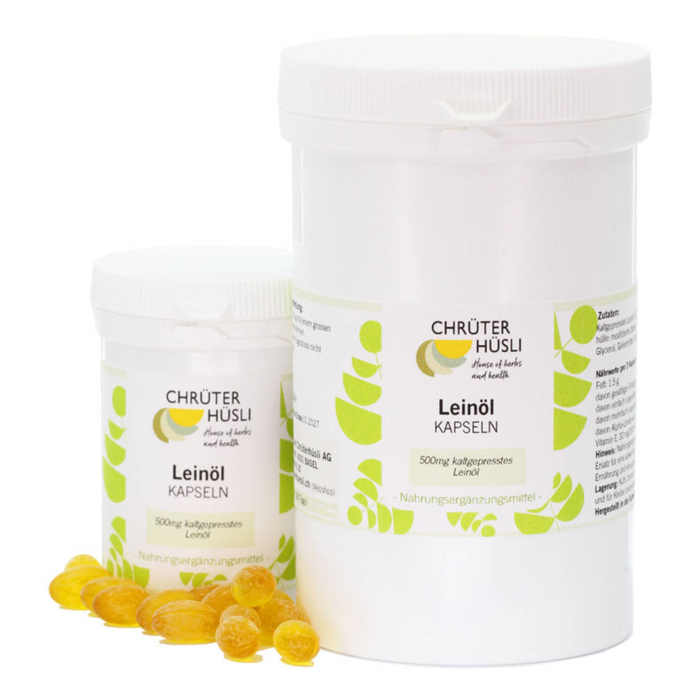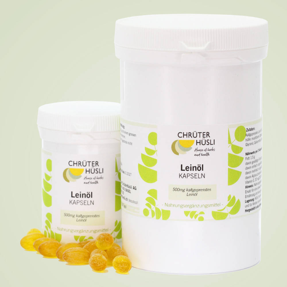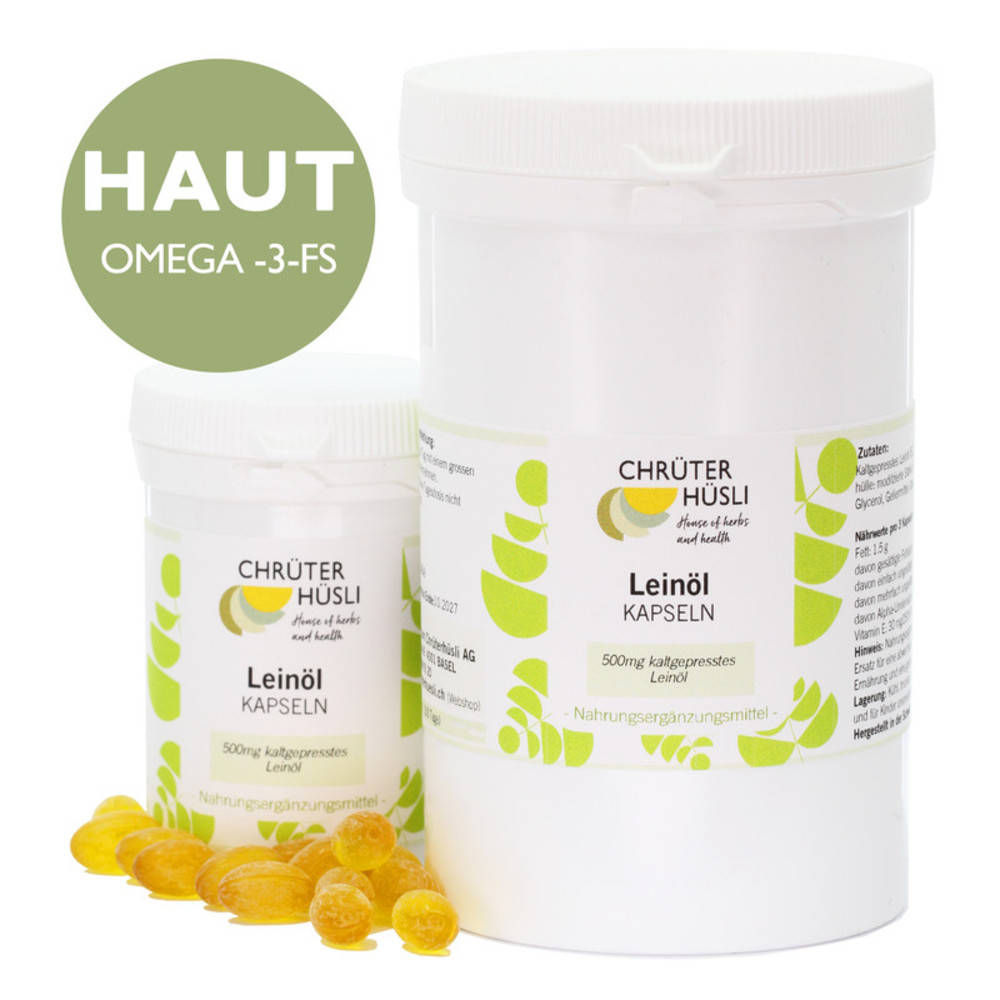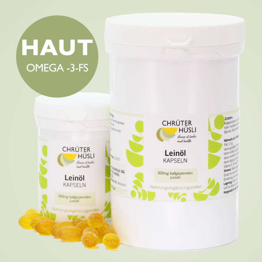 Dies ist eine Nahrungsergänzung mit natürlichem Leinöl und Vitamin E. Leinöl ist reich an Alpha-Linolensäure, einer mehrfach ungesättigten pflanzlichen Omega-3-Fettsäure, die der menschliche Organismus nicht selbst aufbauen kann. Alpha-Linolensäure wird in die Zellmembran eingebaut und ist nötig für deren Aufbau und Funktion. In der modernen Ernährung ist Alpha-Linolensäure oft nicht in genügender Menge enthalten. Die Alpha-Linolensäure hat einen positiven Einfluss auf die Blutfettregulation und die gesunde Hautfunktion. Besonders bei trockener Haut und Schleimhaut (z.B. tränender Augen) leistet Leinöl eine wertvolle Unterstützung. Die Omega-3-Fettsäuren (z.B. Alpha-Linolensäure) leisten im Rahmen einer ausgewogenen Ernährung einen bedeutenden Beitrag für die Gesundheit. Das natürliche Vitamin E stabilisiert ungesättigte Fettsäuren und Zellmembranen. Zusätzlich kann es als Antioxidans freie Radikale abfangen.