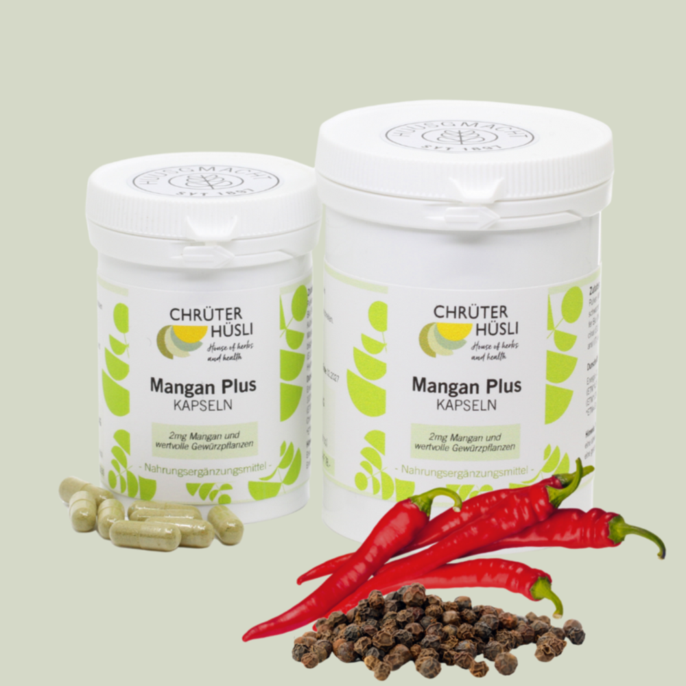 pro Kapsel: Mangan: 5mg = 50% empfohlene Tagesdosis Zink: 0,43mg = 4,3% empfohlene Tagesdosis Eisen: 0,38mg = 2,7% empfohlene Tagesdosis Kupfer: 0,13mg = 13% empfohlene Tagesdosis Chrom: 0,2 mcg = 0,5% empfohlene Tagesdosis