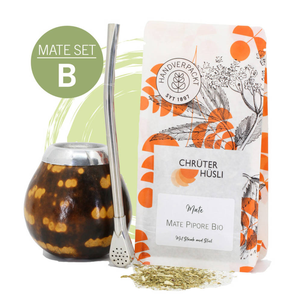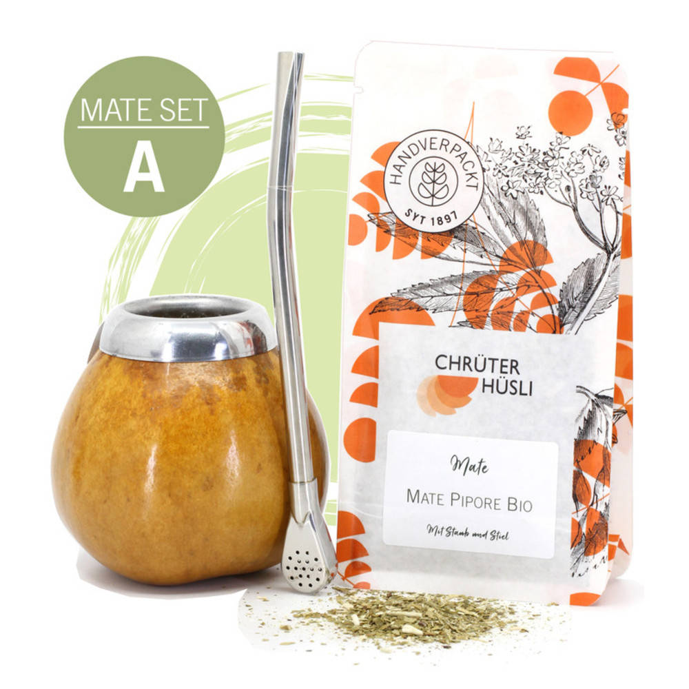 Mit dem dreiteiligen Mate-Tee-Set tauchen Sie ein in die authentische lateinamerikanische Trinkkultur! Ein geschmacksvoller biologischer Mate Pipore Tee , direkt aus Argentinien, erhalten Sie zusammen mit einer Kalebasse nach Ihrer Wahl (siehe Bilder, Varianten) und einer praktischen Bombilla - dem Trinkhalm für das Mategetränk. Hierzu füllt man Mate in die Kalebasse, überbrüht den Tee mit heissem Wasser um das Getränk anschliessend durch eine Bombilla (Trinkhalm mit Sieböffnung) zu geniessen. Diese Zubereitungsart ermöglicht mehrfaches Aufbrühen des Teesatzes und somit langanhaltenden Genuss. Klassisch wird der Mate-Genuss in einer Art Ritual bzw. Zeremonie zelebriert. Denn Mate trinkt man in Gesellschaft von Familie, Freunden und Besuch. Hierbei wird die Kalebasse von einer Person zur nächsten weitergereicht. El cebador, also die Person die den Mate zubereitet, giesst den Mate hierbei für jede Person frisch auf und so wandert die Kalebasse reihum bis alle Gäste versorgt sind. Weithin gilt dieser Brauch als Geste der Freundschaft, Höflichkeit und Offenheit. Wollen Sie als Gast bei der Zeremonie glänzen gibt es ein paar Regeln die es einzuhalten gilt. Trinken Sie den Mate immer aus, verzichten Sie auf ein gutgemeintes Danke und halten Sie sich zurück wenn Sie krank sind. So kann bei der Mate-Zeremonie nichts schiefgehen. Traditionell wird Mate Tee vorwiegend in Lateinamerika als energiespendendes Alltagsgetränk getrunken. Probieren Sie es selbst. Mate ist mittlerweile nicht nur Kult, sondern auch Trend und vielfältig einsetzbar! Weitere Kalebassen, Bombillas und Mate-Tee's sind hier zu finden: Alles Mate-Zubehör