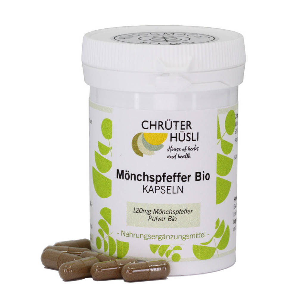 Hausgemachte Mönchspfeffer Kapseln zur Unterstützung des natürlichen, weiblichen Hormonzyklus der Frau. Der Strauch aus der botanischen Familie der Eisenkrautgewächse (Verbenaceae) trägt im Sommer violettblaue kerzenartige Blütentrauben, aus denen im Herbst pfefferkorngrosse, dunkelgraue Früchte mit pfefferartigem Geschmack reifen. Gebräuchlich ist der Name Mönchspfeffer, da in früheren Zeiten die gemahlenen Samen als Gewürzpulver in Klöstern verwendet wurden, um den Geschlechtstrieb der zölibatär lebenden Eremiten zu unterdrücken. Schon früh erkannte man also, dass die Früchte die Fähigkeit besitzen, die sexuellen Begierden des Mannes (im Ggs. zur Frau!) zu dämpfen. Nicht umsonst trägt dieser Strauch im Volksmund auch den Namen "Keuschlamm".