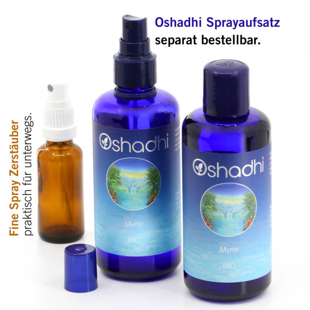 200ml Myrtehydrolat in Glasflasche mit Schraubverschluss. Orginal Oshadhi Sprayaufsatz kann via diesen Link separat zusätzlich bestellt werden.