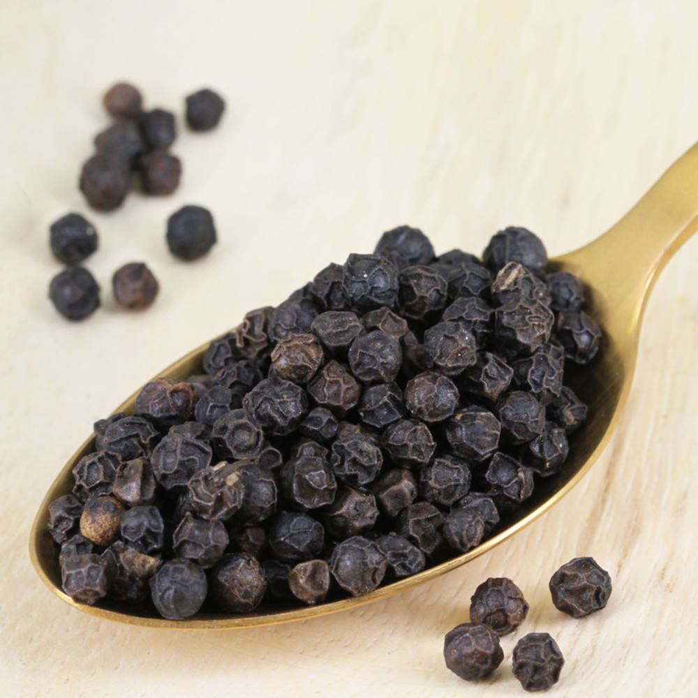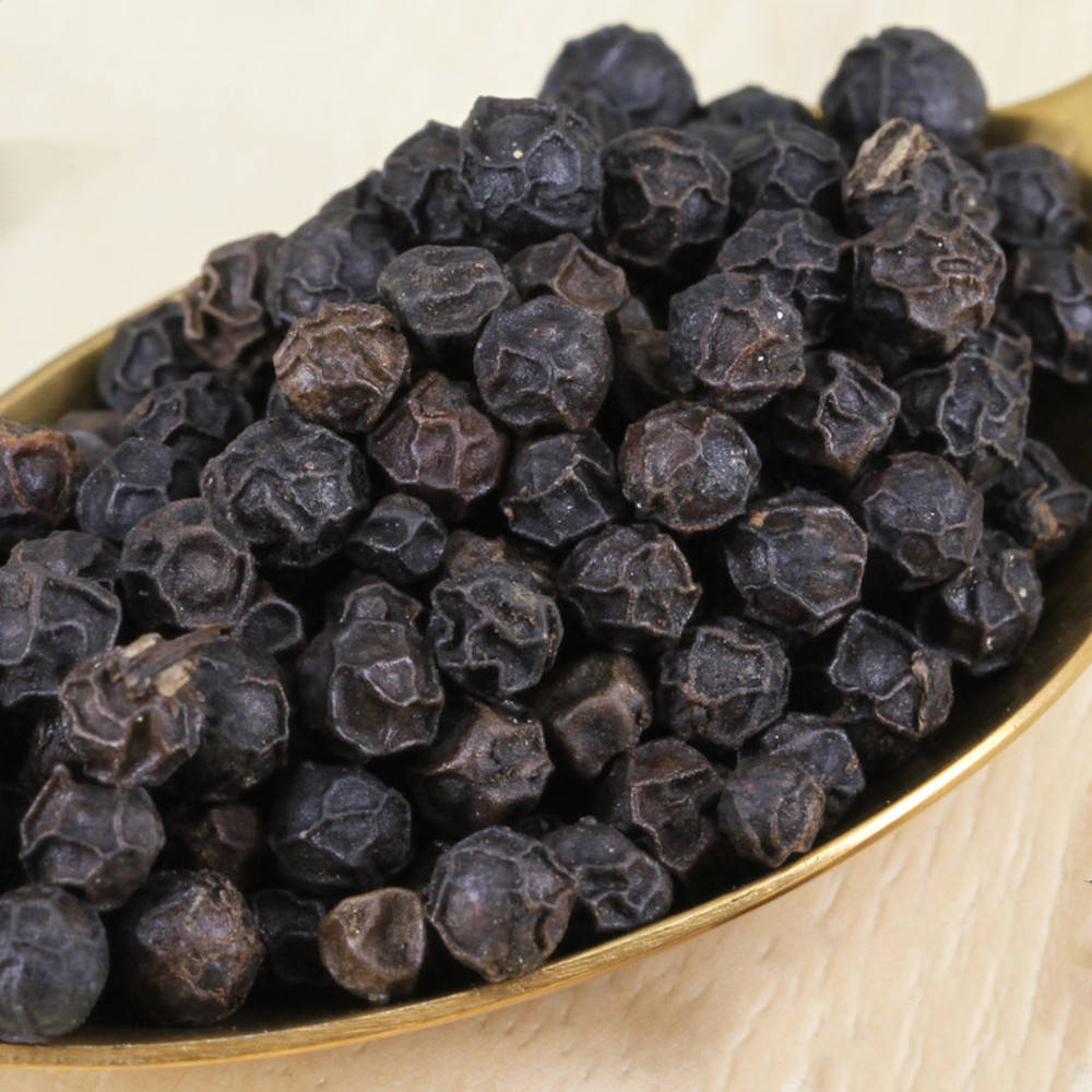 Die Beeren werden kurz vor der Reife geerntet und an der Sonne getrocknet. Der Lampong Pfeffer stammt von der Insel Sumatra (südlicher Teil). Kontrollstelle: CH-BIO-006