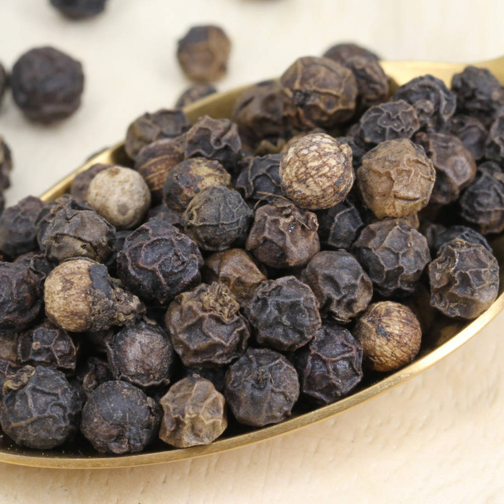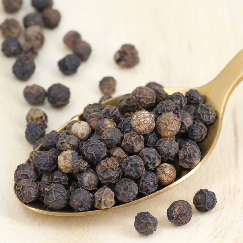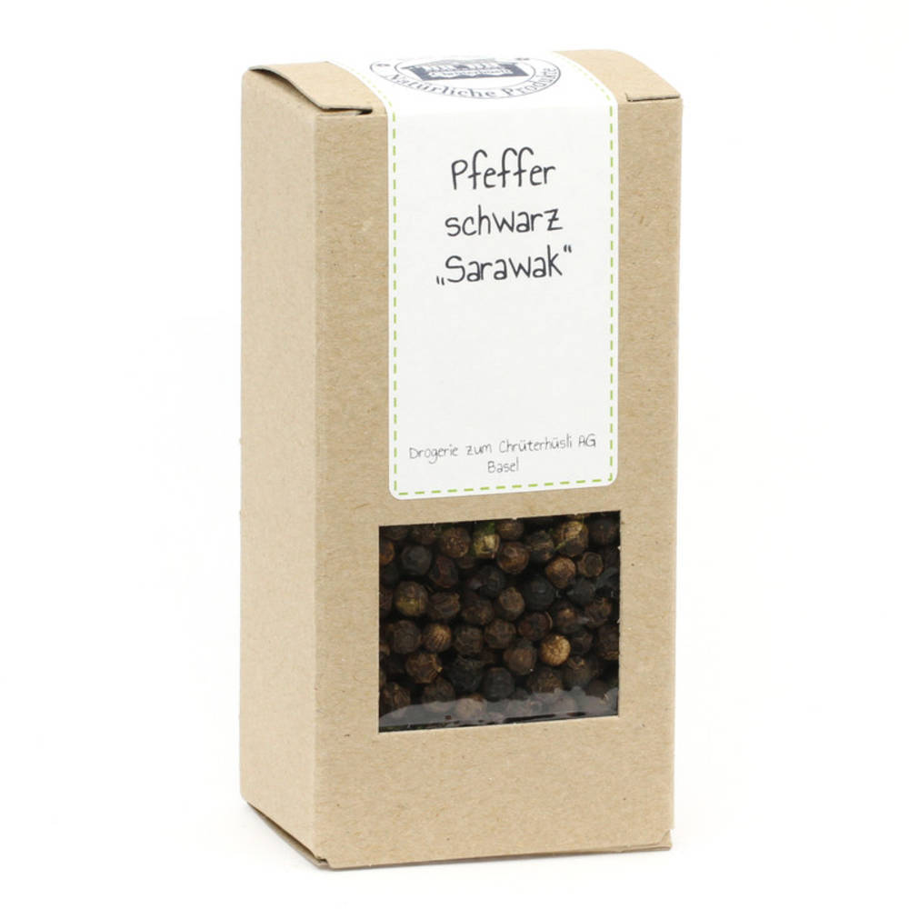 Schwarzer Pfeffer wird vor der Reife gepflückt und unter der Sonne getrocknet. Seine ursprünglich grüne Hülle verfärbt sich dabei schwarz und wird runzlig. Sarawak Pfeffer wird auf der Insel Borneo angebaut.