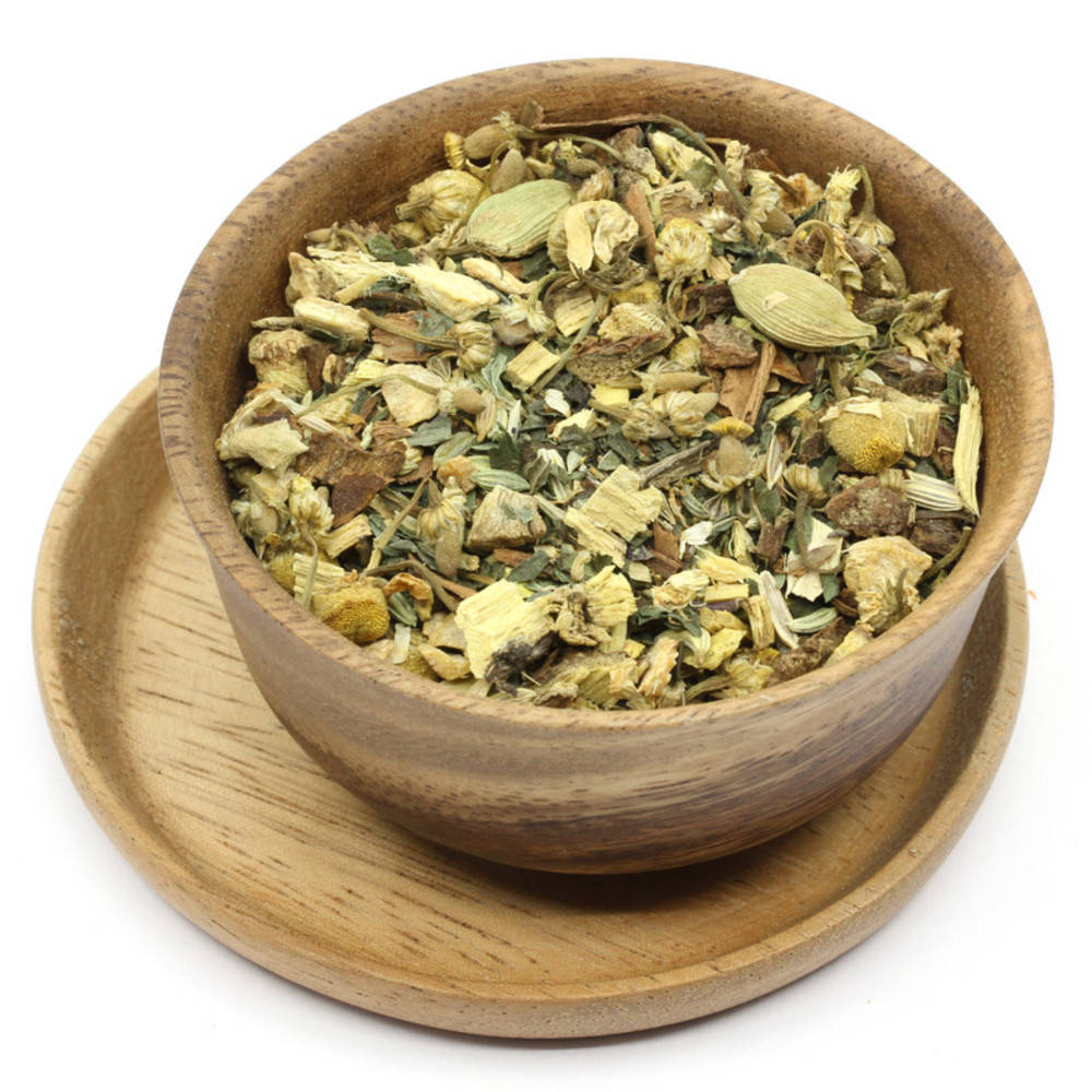 Süssholz, Fenchel, Ingwerstücke, Kamille, Pfefferminze, ganzer Kardamom, Zimtstücke, Anissamen. Alle Zutaten aus kontroliert biologischem Anbau.