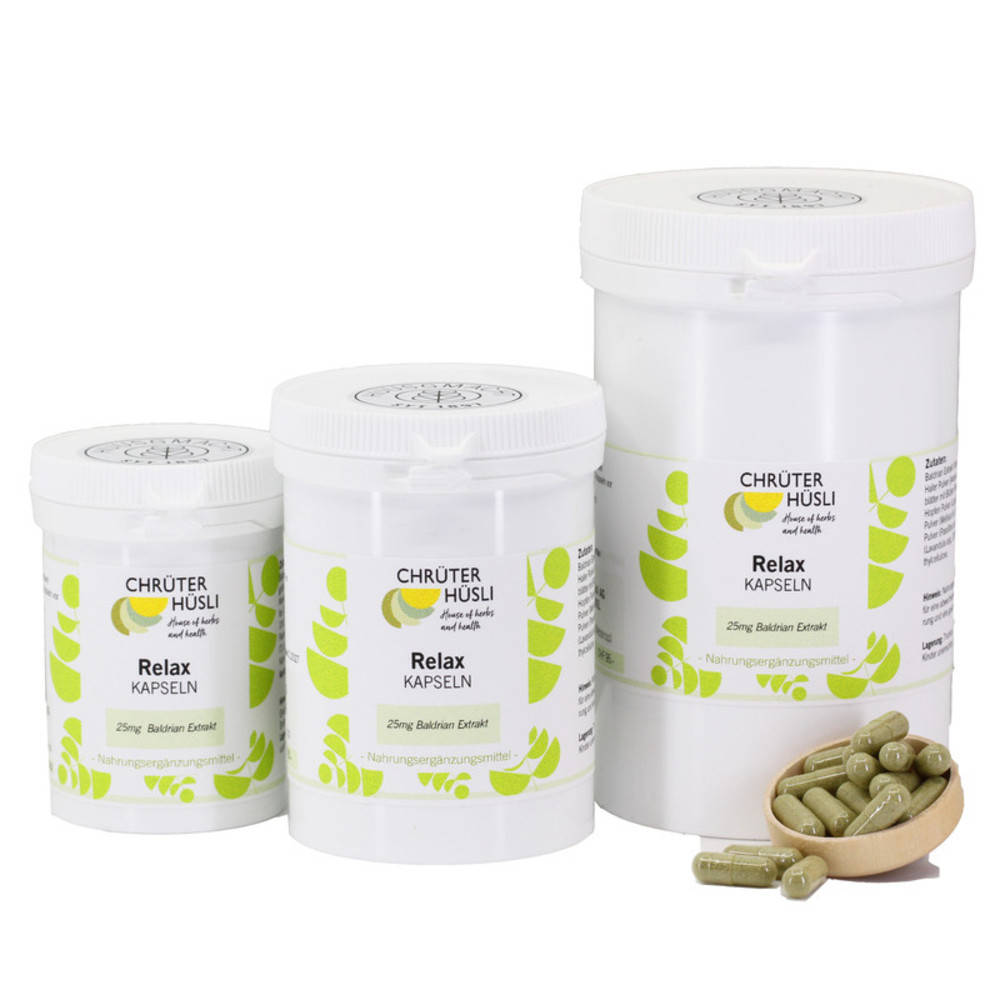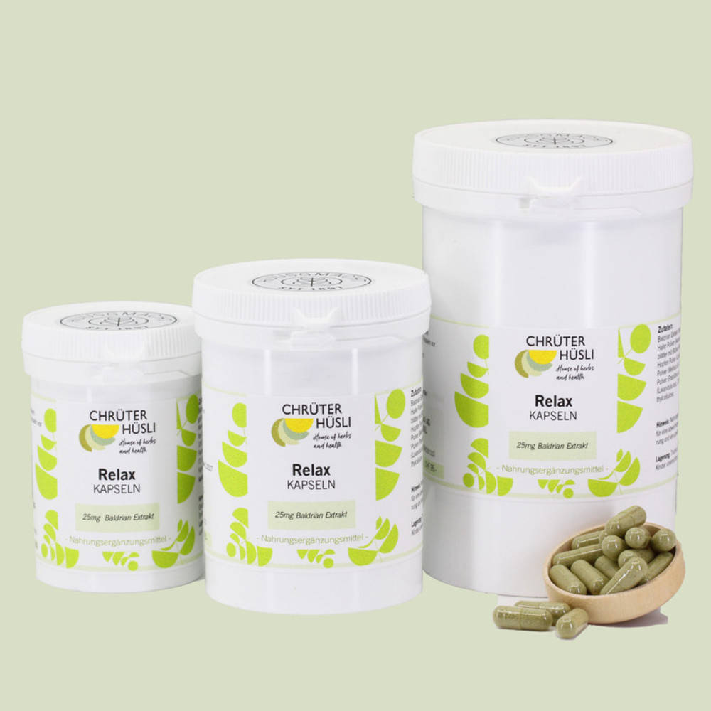 Baldrian Extrakt (Valeriana off. 10%, 25mg Baldrian Extrakt pro Kapsel), Grüner Hafer Pulver Bio (Avena sat. viridis 10%), Weissdornblätter mit Blüten Pulver (Crataegus c/flos 10%) Hopfen Pulver (Lupulus humu. 10%) Melisse Pulver (Melissa off. 10%) Passionsblumenkraut Pulver (Passiflora inc. 10%) Lavendel Pulver (Lavandula ang. 10%) Kapselhülle: Hydroxypropylmethylcellulose Kontrollstelle: CH-BIO-006