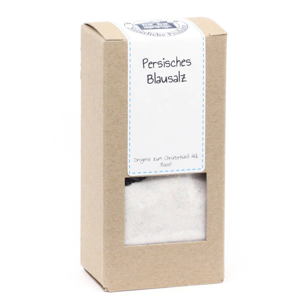 Die Blaufärbung des persischen Blausalz aus dem Iran stammt vom blaugetönten Sylvin bzw. Kaliumchlorid-Anteil. Das Licht bricht sich in der Kristallgitterstruktur auf besondere Weise und das Salz erscheint blau.