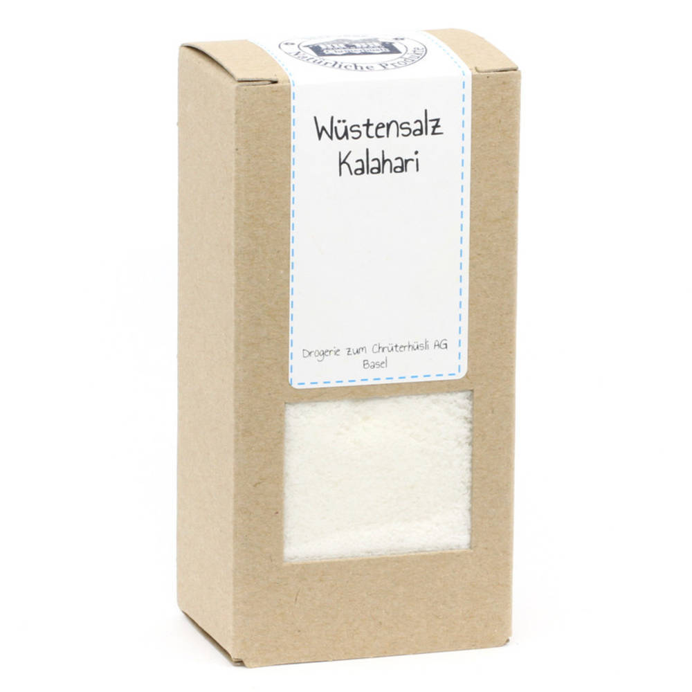 Das Wüstensalz kommt aus einem unterirdischen Salzdepot der südafrikanischen Kalahari Wüste. Dieses Salzdepot ist über 300 Millionen Jahre alt. Das Kalahari Salz ist somit gänzlich frei von Zusätzen und Schadstoffen und gilt als eines der reinsten Salze der Welt. Wüstensteinsalz kann gut als Tafelsalz verwendet werden oder auch mitgekocht werden.
