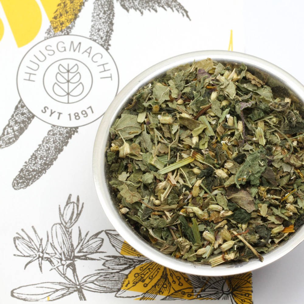Brennnesselblätter Bio* Frauenmänteli Bio* Zitronengras Bio* Melissenblätter Bio* Schachtelhalm Bio* Schafgarbenblüten Bio* Kontrollstelle: CH-BIO-006