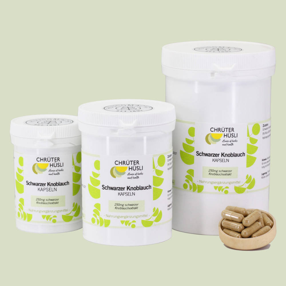 Durch wochenlange Fermentation verwandelt sich frischer, weisser Knoblauch in einen gelbbraunen, fast schwarzen Knollen mit weicher Konsistenz. Der Knoblauch verliert durch diesen natürlichen Alterungsprozess seinen aggressiven, kräftigen Geschmack. Für die Gesundheit ist fermentierter, schwarzer Knoblauch unvergleichbar wertvoll! Nach altem Aberglauben soll Knoblauch der Abwehr von Vampiren dienen. Die moderne Wissenschaft hat inzwischen belegt, dass Knoblauch tatsächlich eine Schutzfunktion besitzt, allerdings nicht vor Graf Dracula, sondern vor Veränderungen, welche mit zunehmendem Alter einhergehen. Besonders Menschen mit den bekannten Zivilisationskrankheiten werden vom schwarzen Knoblauch besonders angesprochen. Um von den medizinischen Effekten des Knoblauchs profitieren zu können, müssten täglich mindestens zwei Knoblauchzehen konsumiert werden. Nicht bei wenigen Menschen verursacht der Knoblauchverzehr Blähungen und Magen-Darm-Reizungen, ganz zu schweigen von der entsprechenden Ausdünstung der Schwefelverbindungen (Allylmethylsulfid) über die Haut und Atemluft. Seit einiger Zeit hat sich eine neue, absolut geruchsfreie Knoblauchvariante in Szene gesetzt: der schwarze, fermentierte Knoblauch! Synonyme: fermentierter Knoblauch, Knoblauch schwarz