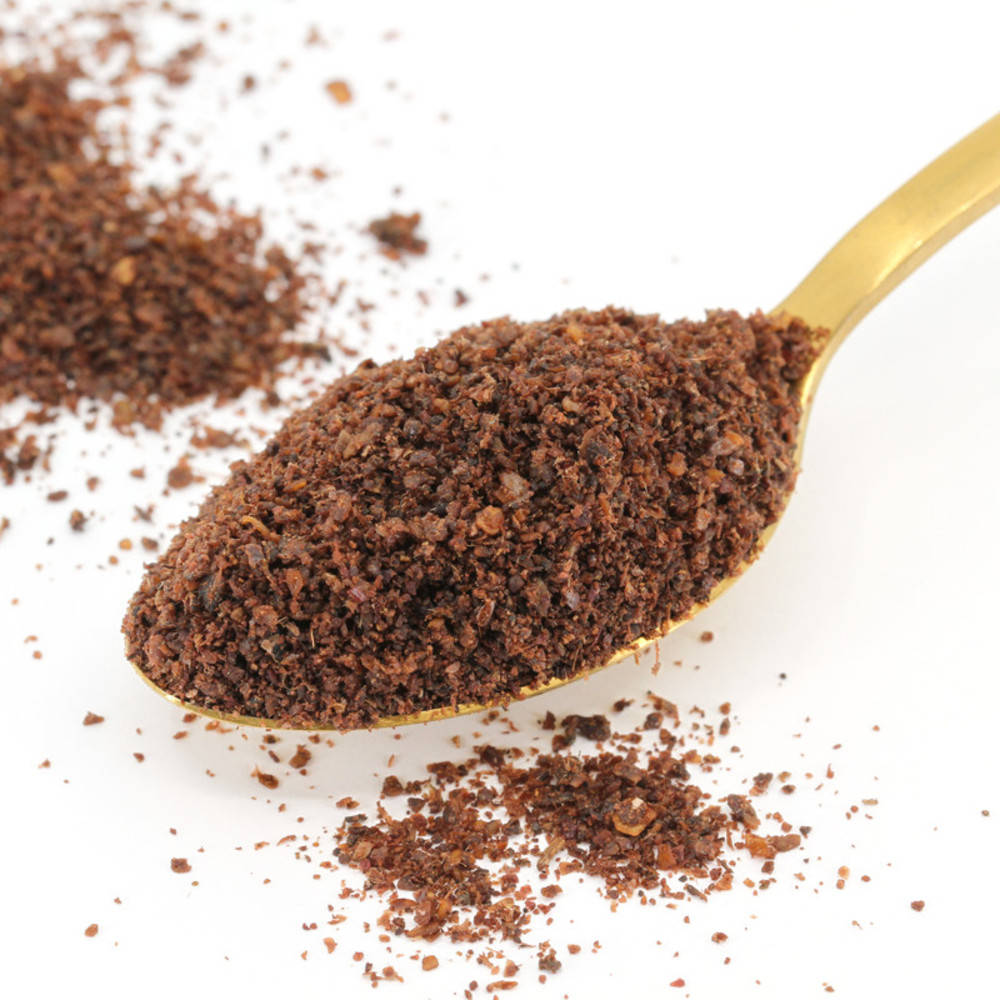 In türkischen und iranischen Restaurants ist Sumach traditionell als Tischgewürz, mit Salz vermengt, häufig anzutreffen. Sumach selbst wird ebenso oft in der libanesischen, syrischen und persischen Küche eingesetzt. Das gemahlene Pulver duftet eher schwach. Sein Aroma hingegen schmeckt säuerlich, blumig-fruchtig bis hin zu herben, adstringierend, harzig, pinienartig und holzig-würzigen Noten. Sumach erfüllt die Funktion von Zitronensaft oder Essig, wobei es gegenüber Zitronensaft den Vorteil hat, dass es beim Kochen nicht verdunstet. Es verleiht Fleischspeisen und Reisgerichten Säure und Farbe. Hummus und Tahin, gegrilltes Fleisch, Fladen, Kebab, Teigtaschen, Geflügel und Pilaw kommen nicht ohne eine gesunde Prise Sumach aus. Und in der Gewürzmischung Zahtar ist Sumach unerlässlich. Probieren Sie auch mal gedämpfte grüne Bohnen mit Sumach, etwas Olivenöl und Meersalz abzuschmecken! Auch über geröstetes Wurzelgemüse, Tomaten oder in der Salatsauce ist Sumach ein erfrischend aromatisches Erlebnis. Und nicht zu vergessen: einer neutralen Joghurtsauce vermag Sumach jedoch neben seinen geschmacklichen Aspekten auch eine schöne Farbe und ein feines Aroma zu verleihen. BOTANIK Sumach ist ein Laubbaum aus der Familie der Sumachgewächse, welcher im Mittel- bis Hochgebirge im Mittelmeerraum und Nahen Osten wächst. In der Türkei, im Iran, Ägypten, Libanon und sogar Sizilien wird die Sumachbeere heute angepflanzt. Die grünen Blätter färben sich im Herbst rot und aus den weissen Blüten gedeihen kleine, haarige, rostrote Beeren, welche in dichten Trauben an der Pflanze hängen. Das Fruchtfleisch der Steinfrüchte des Sumachbaumes (Synonyme: Gewürzsumach, Färberbaum, Gelbholz) wird getrocknet und grob gemahlen. Der Name "Sumach" geht auf das aramäische Wort summaq zurück und bedeutet "rot". Die Römer nutzten Sumach als Säuerungs- und Färbemittel. UNTERSCHIEDLICHE QUALITÄTEN Die Variante "Sumach ohne Salz" ist die hochwertige Version dieses besonderen Gewürzes, im Gegensatz zum häufigeren Tischgewürz "Sumach mit Salz", bekannt aus den orientalischen Restaurants. Beim Letzteren wird das Fruchtfleisch vor dem Trocknen und Mahlen nicht vom Kern der Frucht getrennt und muss zwecks Verhinderung des Verklumpens mit Salz streubar gehalten werden. Reiner Sumach, also Sumach ohne Salz enthält nicht nur kein Salz zur "Streckung", sondern auch keinen Fruchtkern. Die anspruchsvollere Verarbeitung führt nicht nur zum höheren Preis, sondern auch zum zarteren Aroma. Das intensive Burgunderrot, das die Verbraucher vom Sumachbeerenpulver erwarten, hat das Gewürz übrigens nicht jedes Jahr. Die Farbe des Gewürzsumachs kann erntebedingt variieren, was so manche Gewürzhändler dazu verleitet, dem Sumachpulver eine Portion Farbstoff beizufügen. Die Farbe ist beim Sumach keine Referenz für die Qualität. HARMONISCHE GEWÜRZKOMBINATIONEN Kontrollstelle:CH-BIO-006