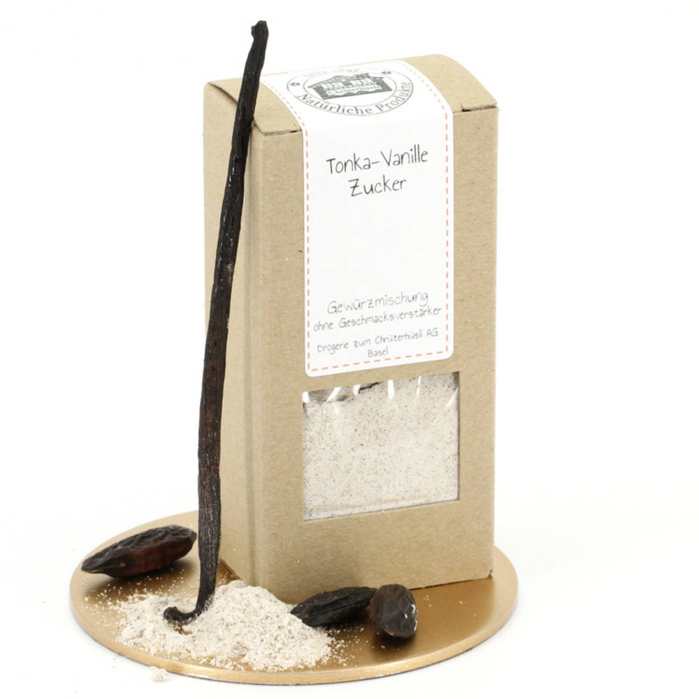 Demerara Rohrohrzucker, Puderzucker, Tahiti Vanille, Tonkabohnen.