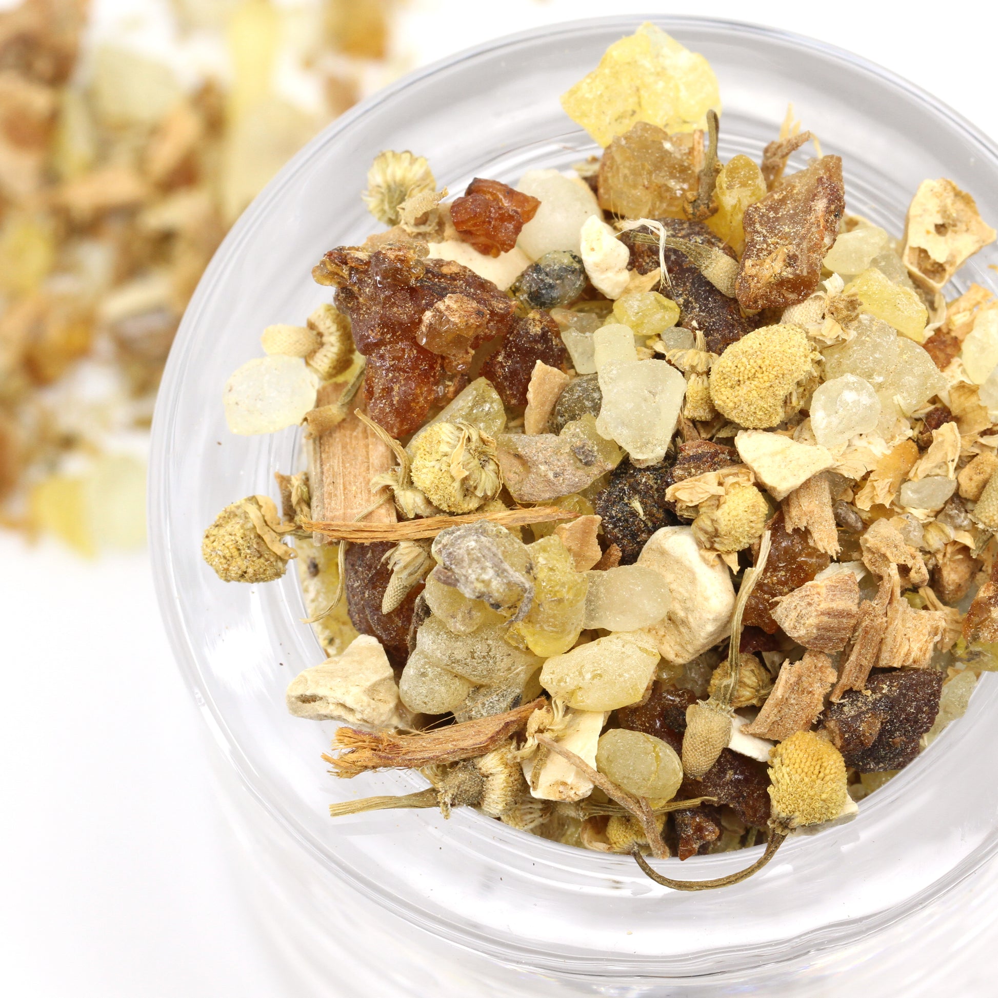 Eine kleine Menge auf glühende Räucherkohle oder ein Räuchersieb geben und den feinen Duft langsam wirken lassen. In Ruhe einatmen, Gedanken zur Seite legen und den Tag ausklingen lassen.