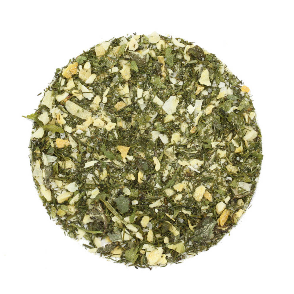 Dillspitzen Bio, Zwiebeln Bio, Sellerie wurzel Bio, Petersilie Bio, Pfeffer weiss Bio, Pfefferminze Bio, Salz.