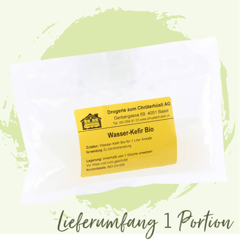 Benötigen Sie kein Glas, bestellen Sie alle Artikel bitte einzeln. Frische Zitronen sind nur im kompletten Set enthalten. Oft wird davon berichtet, dass eine kurze Nachgärung in Flaschen im Kühlschrank sich positiv auf den Geschmack auswirkt. 1-2 Tage Aufbewahrung im Kühlschrank machen das Getränk noch prickelnder und frischer. Vor allem schmeckt der Wasserkefir gekühlt am besten. Achten Sie auch bei Flaschen im Kühlschrank darauf, dass überschüssige Kohlensäure noch entweichen kann. WICHTIG! Bringen Sie Ihre Wasserkefir-Kultur niemals mit Metall in Berührung, weil ihr das ernsthaft schaden könnte. Benutzen Sie deshalb ausschliesslich Plastiksiebe und Plastiklöffel. Wenn das fertige Getränk einmal muffig riechen sollte oder sich sonst merkwürdig verhält, schütten Sie den Ansatz sicherheitshalber weg. Spülen Sie die Wasserkefir-Kristalle in einem Plastiksieb gründlich aus und starten Sie mit einem neuen Ansatz. Urlaubstipp: Wenn Sie in den Urlaub fahren, überstehen die Kefirkristalle diese Pause am besten im Kühlschrank. Bedecken Sie sie mit Wasser und fügen Sie ca. 1-2 EL Zucker hinzu. Abdecken, ohne sie luftdicht zu verschliessen. Wenn Sie eine neue Kultur starten wollen, schütten Sie die alte Flüssigkeit unbedingt weg und setzen Sie die Kristalle neu an. Es kann einige Ansätze dauern, bis die Kultur wieder wie gewohnt arbeitet.