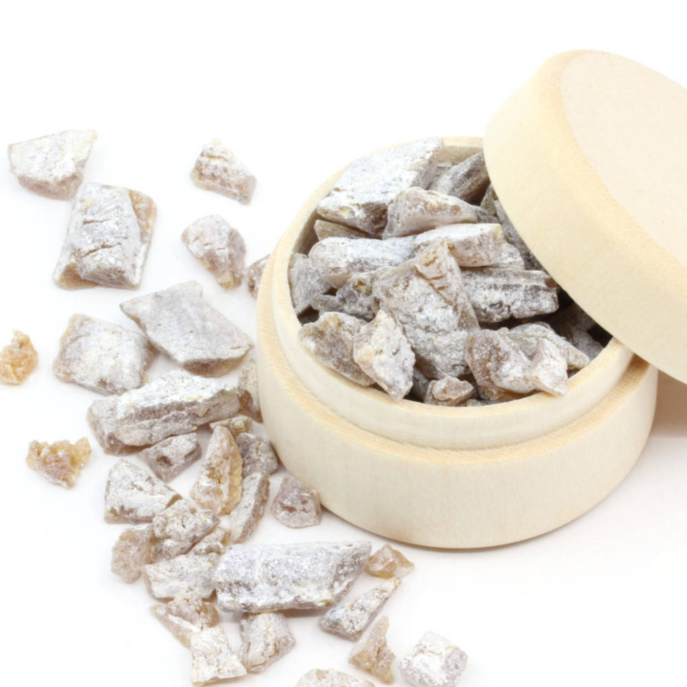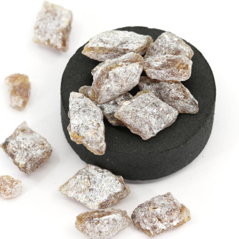 Für diesen Weihrauch wird in einem griechischen Kloster von Hand Weihrauch und ätherisches Jasmin-Öl sorgfältig verarbeitet. Während der ganzen Verarbeitung beten die Nonnen und segnen damit den Weihrauch. Am Schluss wird jede einzelne Kugel in Talk getaucht um ein Verkleben zu verhindern.
